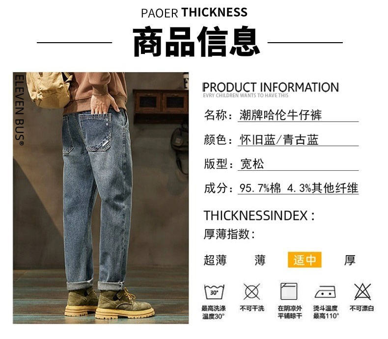 The new autumn/winter 2024 trendy retro men's jeans are loose, straight-leg, casual and versatile Halon jeans for men