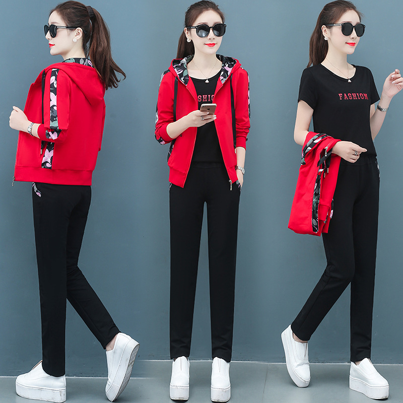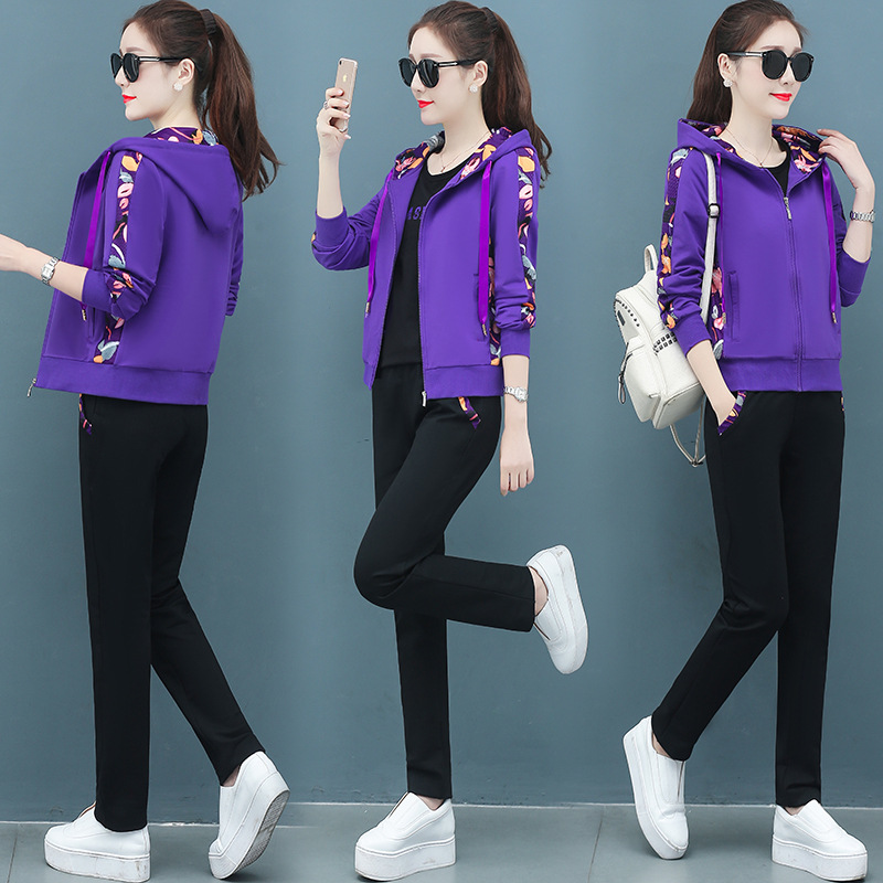 The new autumn women's fashion and casual set, Korean-style hooded sweatshirt for women, is a trendy three-piece set