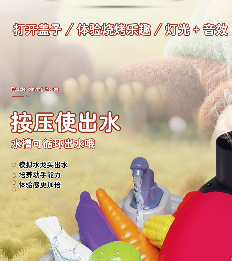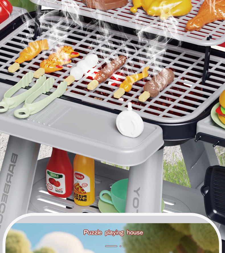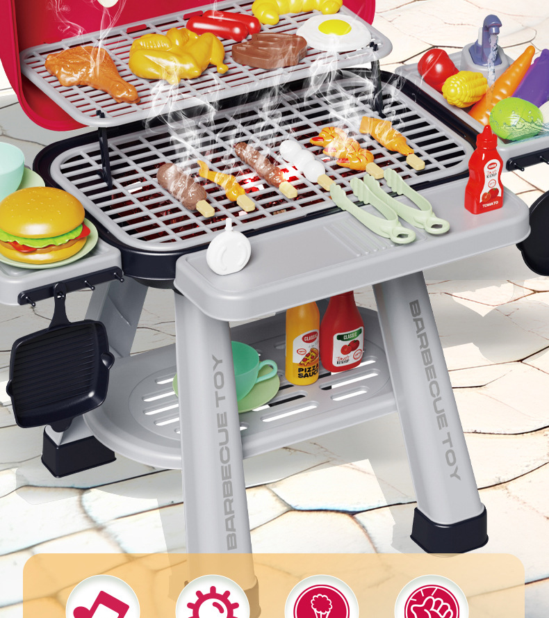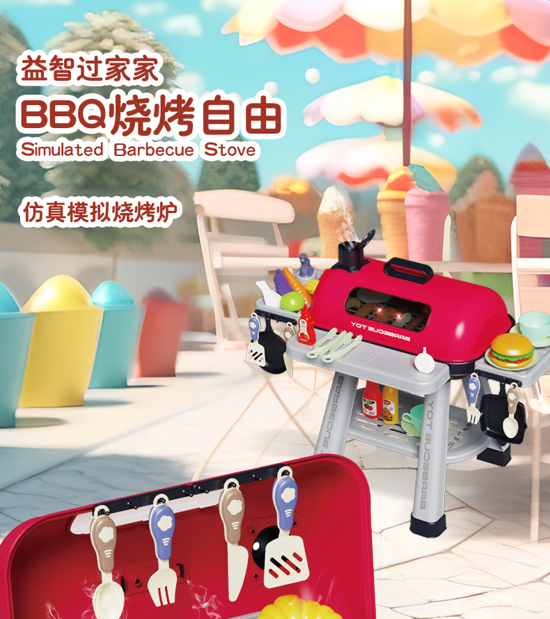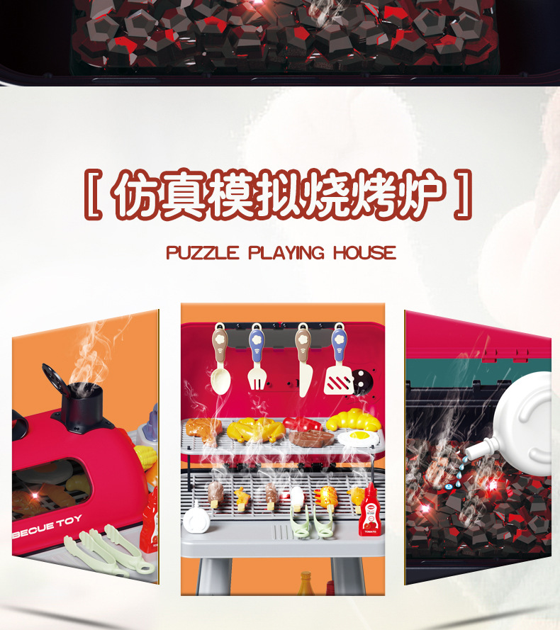 The new children's barbecue grill simulates a role-playing toy, a girl's kitchen, a kitchen spray, water washing, vegetables, and a barbecue grill with fun interaction