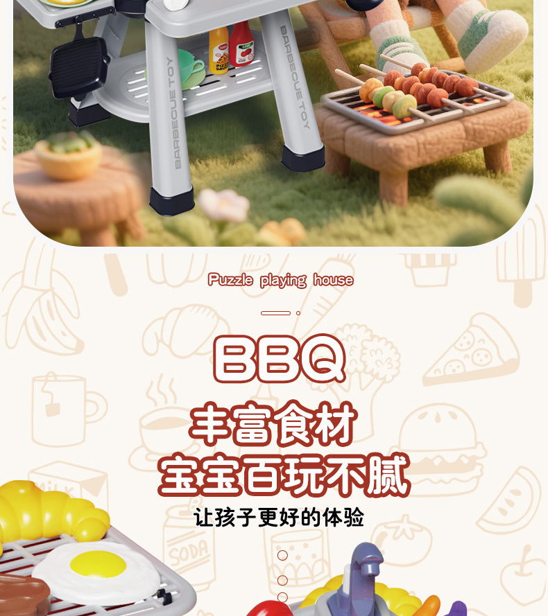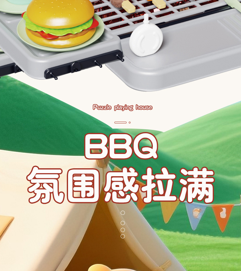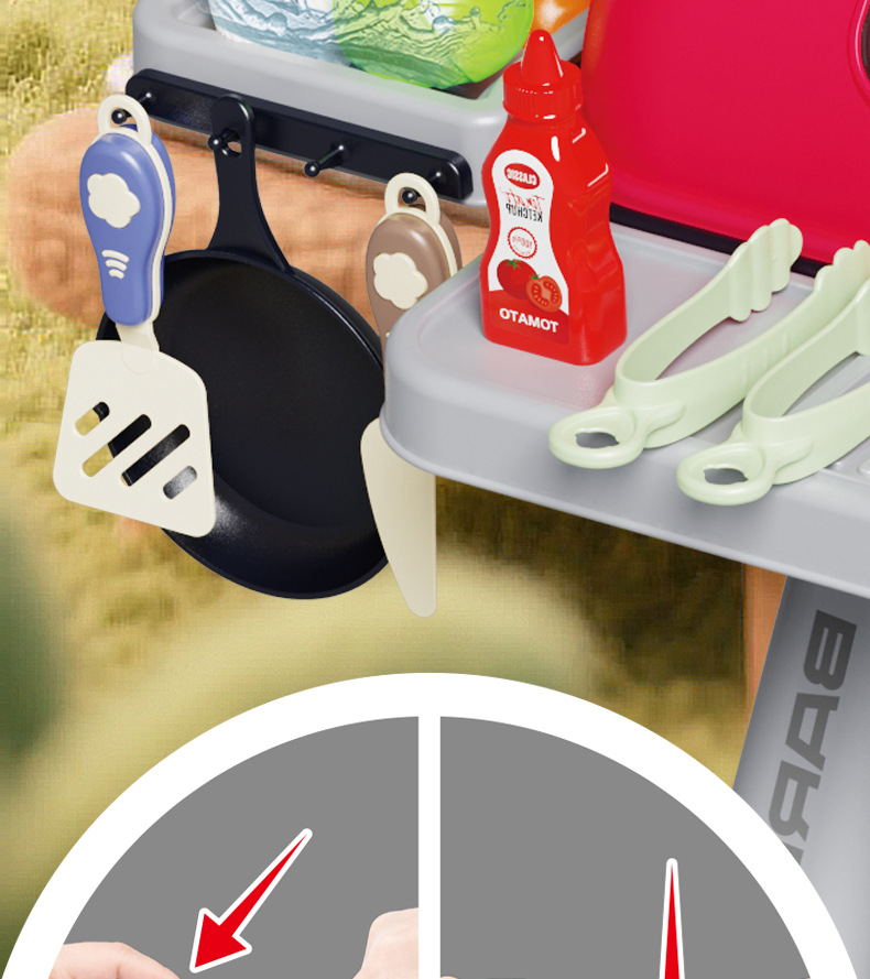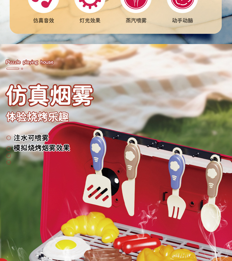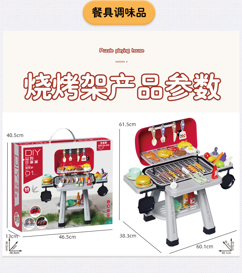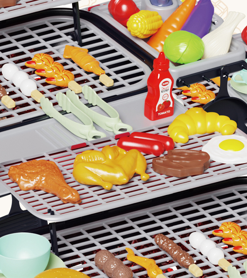 The new children's barbecue grill simulates a role-playing toy, a girl's kitchen, a kitchen spray, water washing, vegetables, and a barbecue grill with fun interaction