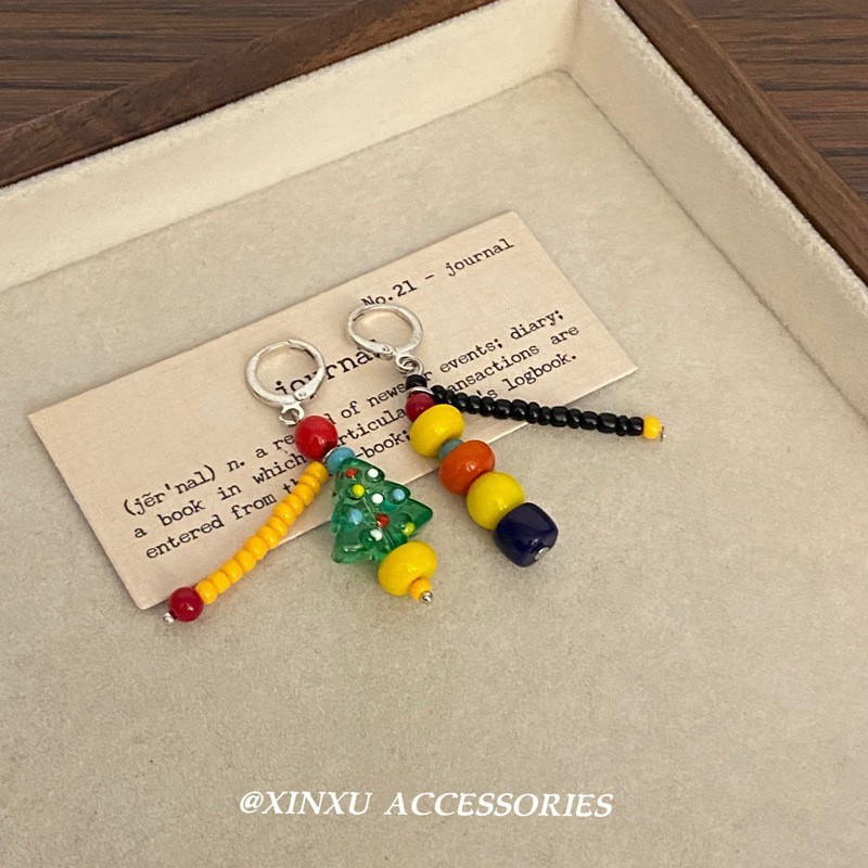 The new Chinese-style retro beaded asymmetrical small fish flower ear buckle design is elegant, unique, simple and distinctive for women