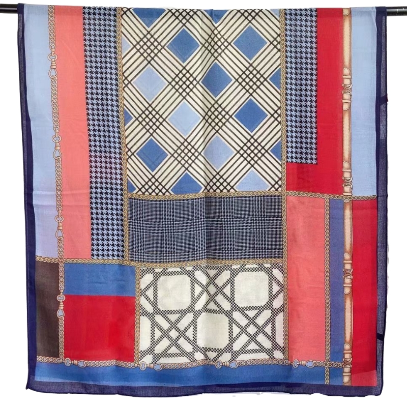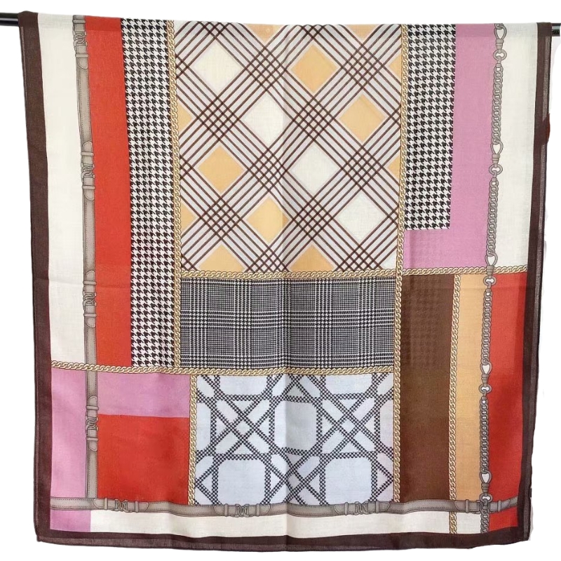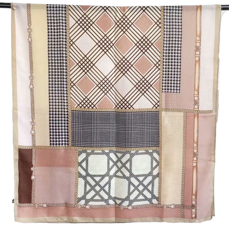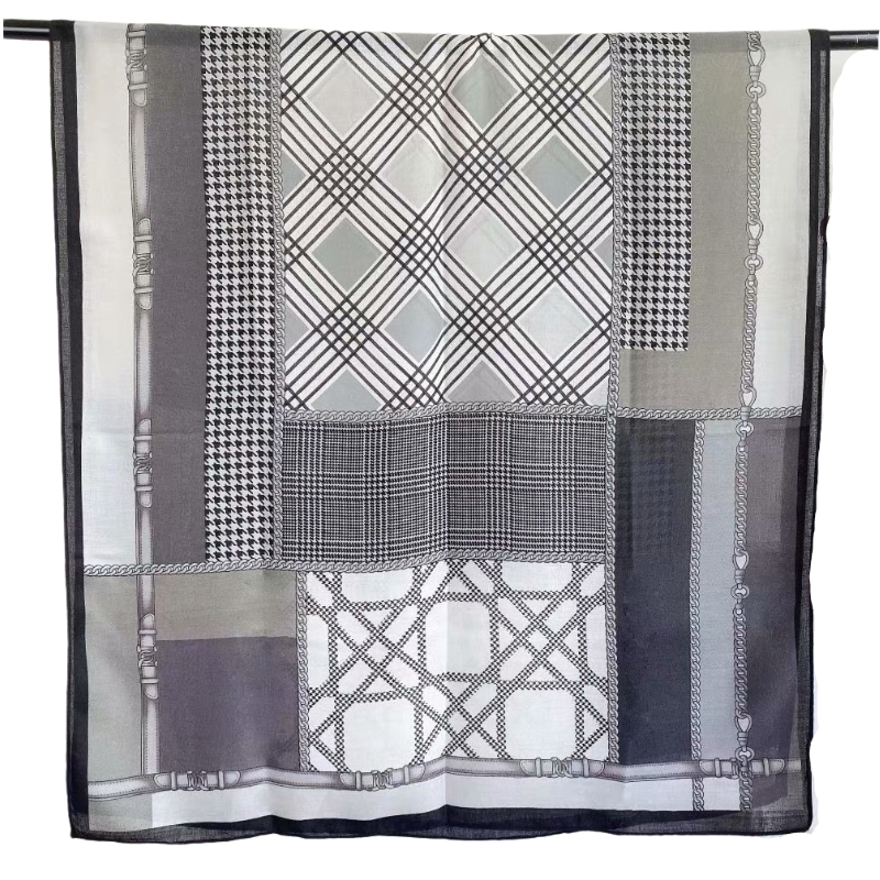 The new cotton and linen scarf with chain check print is a soft and long silk scarf for three seasons, which is fashionable and warm