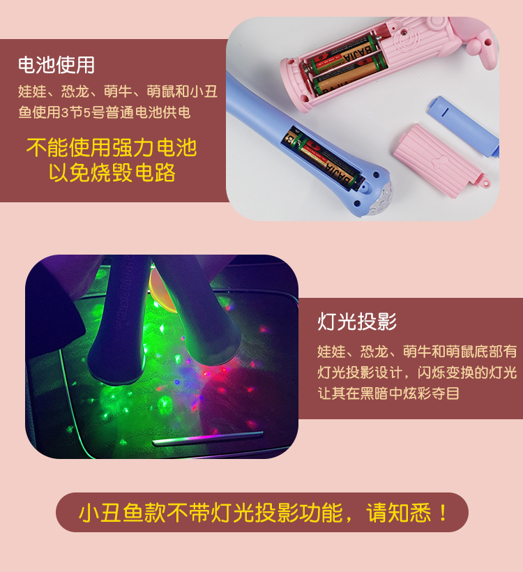 The new cross-border light and music sticks, cartoon dinosaurs, animals, little fish, windmills, projection sticks and children's toys are selling well at the street stall