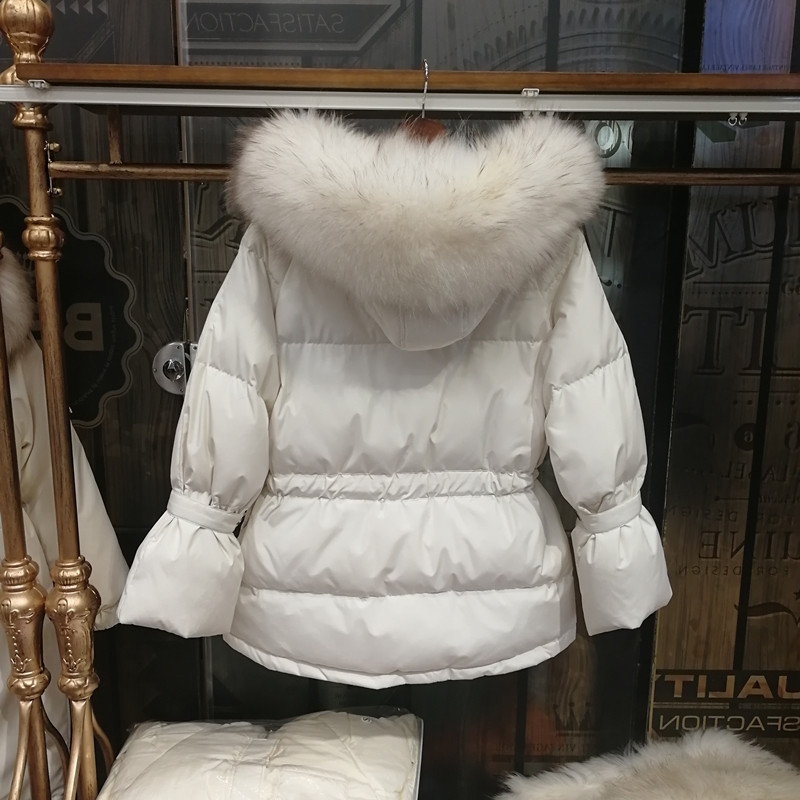 The new Dongdaemun casual short hooded princess with a large fur collar and flared sleeves fitted hooded thick down jacket