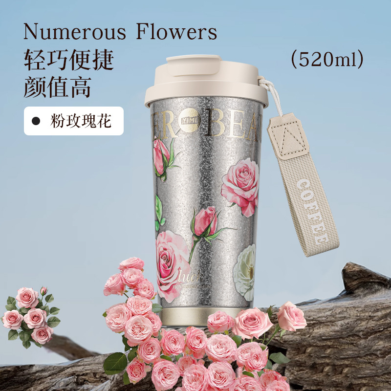 The new double-drink Lily of the valley coffee cup has a high appearance level, a pure titanium inner liner, a thermos cup, and is portable and portable with a straw