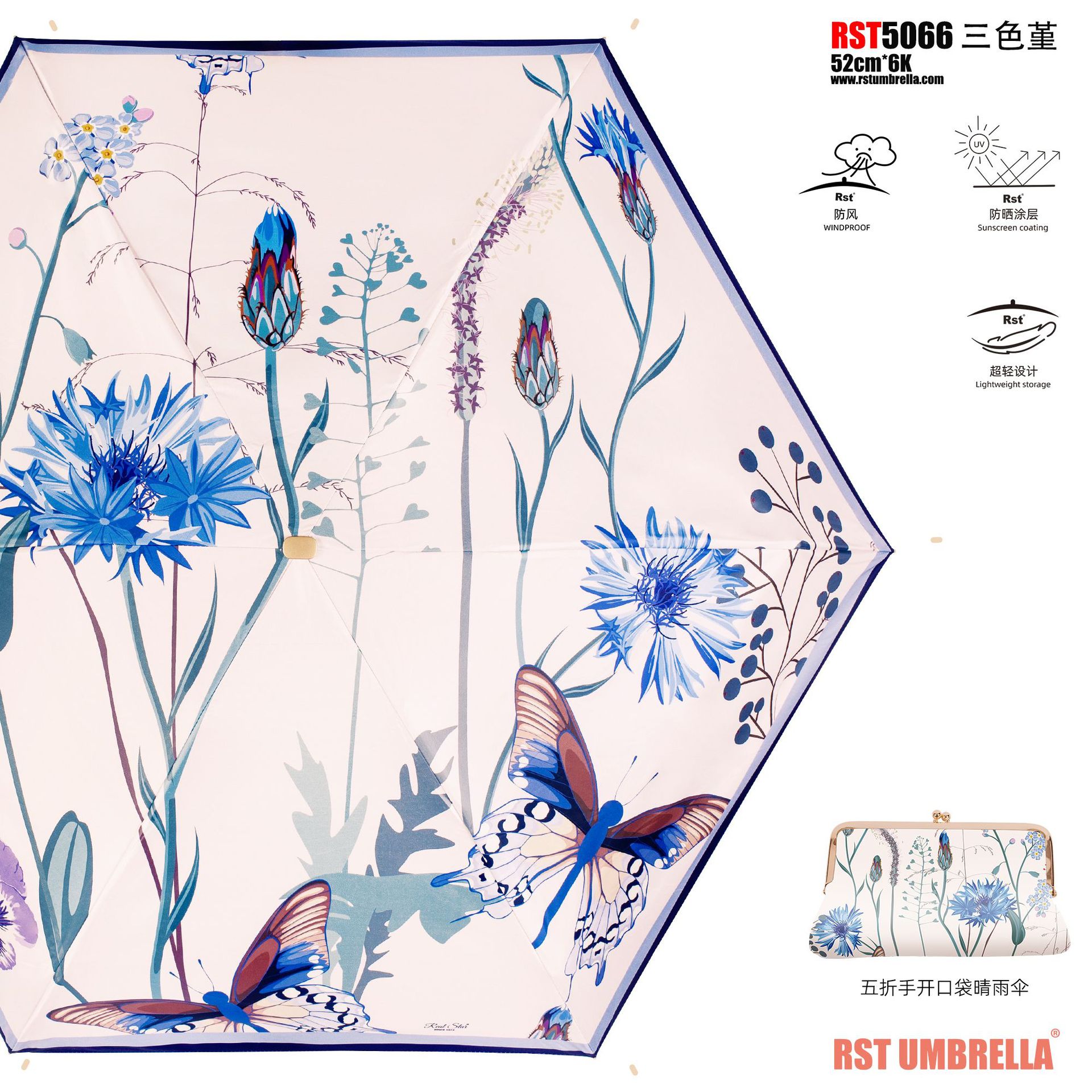 The new five-fold umbrella from Xingbao features an oil painting style storage and folding handbag design. It is a versatile and fashionable accessory for middle-aged people