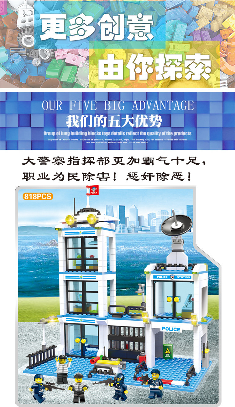 The new foreign trade product, Pinxing 326, is compatible with the Lego City series police station assembly children's toys