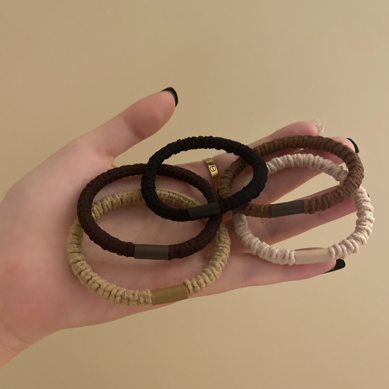 High-quality Korean version, basic and practical, brown earth tone twill hair tie, base hair band, plain hair band