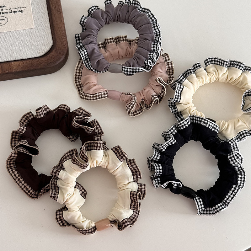 The new 2024 high-elasticity retro checkered lace small intestine hair tie for autumn and winter, a stylish ponytail hair tie