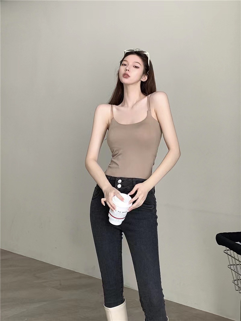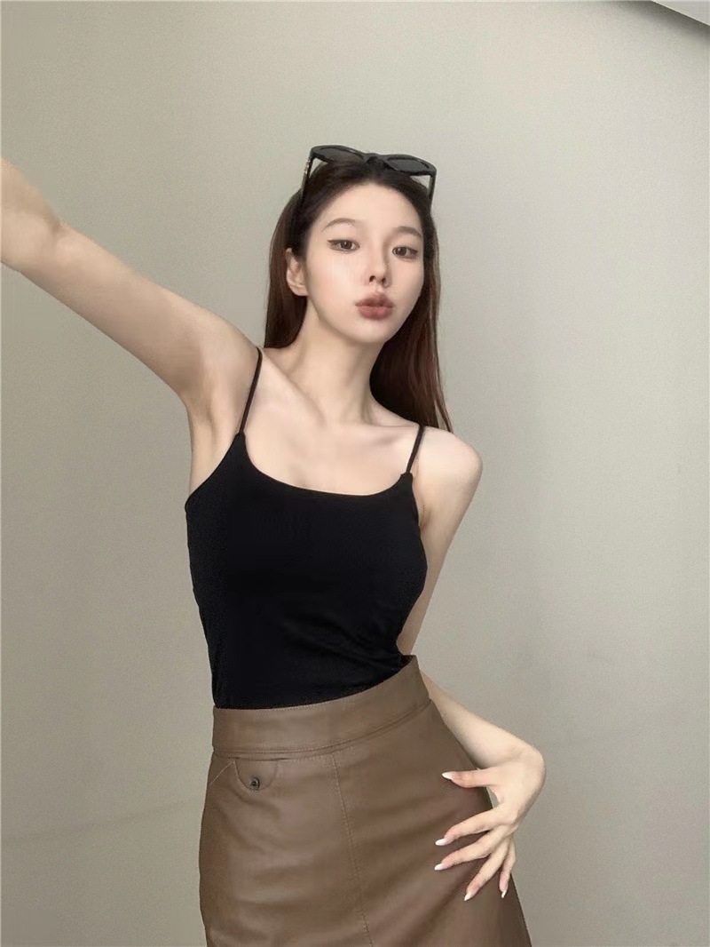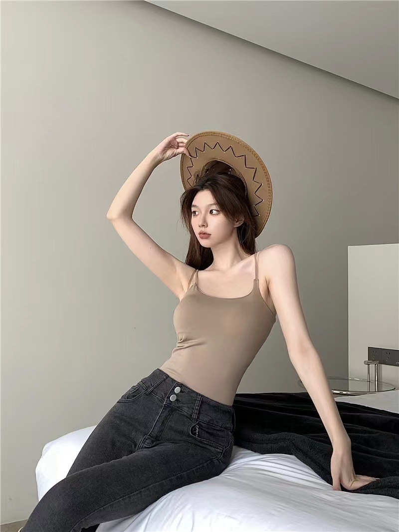 The new hot girl white mini halter top with a chest pad is a versatile and sporty look. It's a pure and simple sleeveless base layer for women