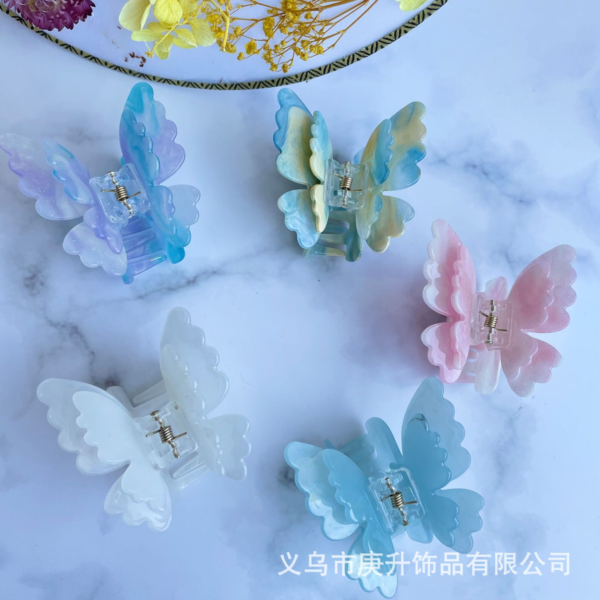A super ethereal and colorful three-dimensional butterfly hair clip, a sweet and cute girl acetic acid hair clip for half-tying hair at the back of the head, a new Korean-style hair clip