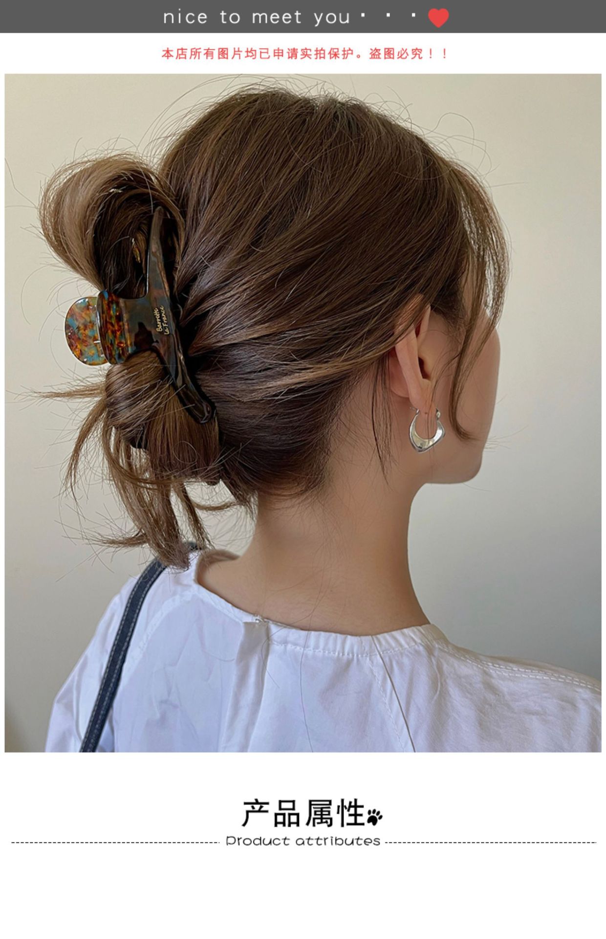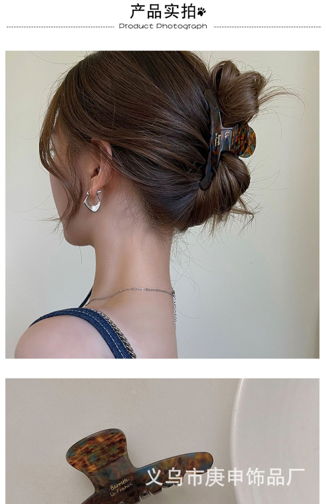 High-end acetate hairpin for women, large updo hairpin for the back of the head, 2024 new ins headwear shark clip
