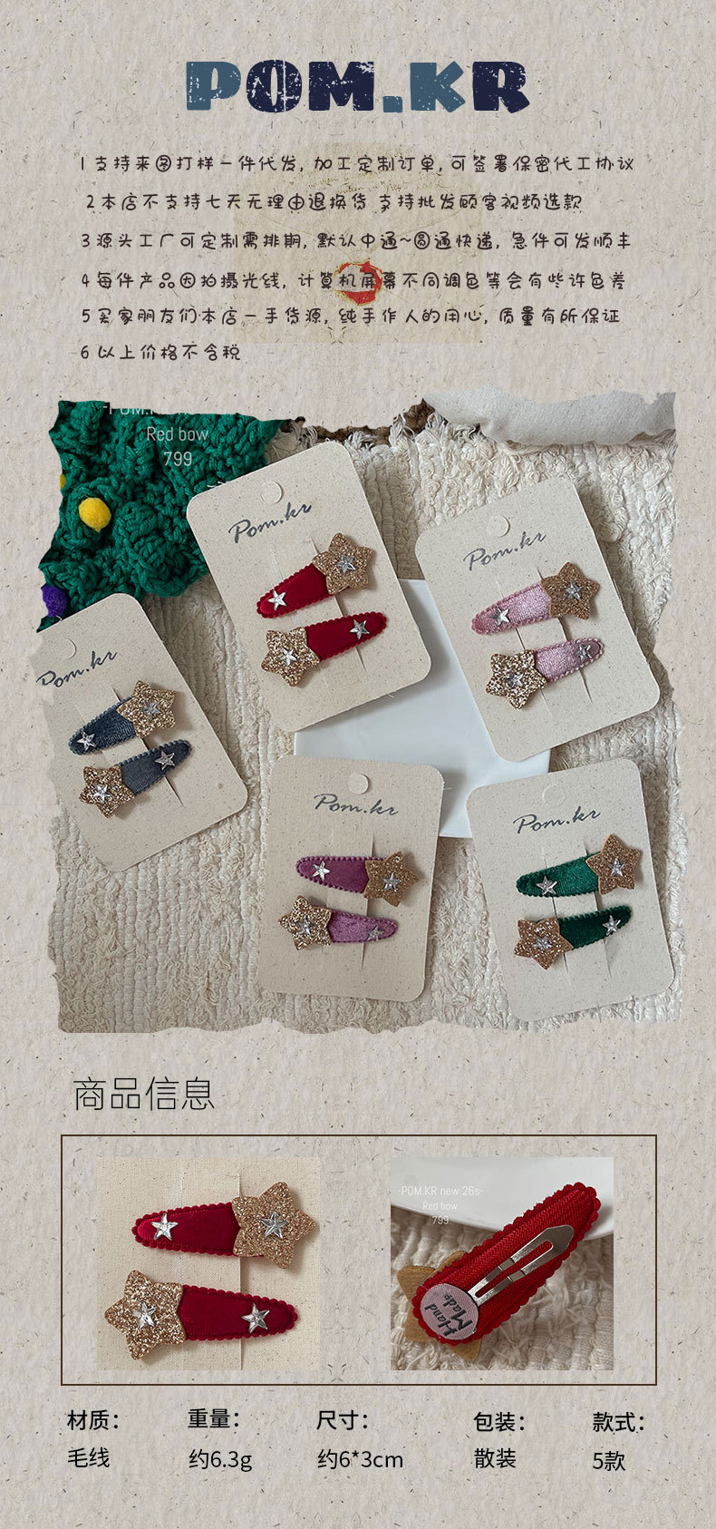 The new Korean-style cute and playful five-pointed star hair clip is a handcrafted children's side bangs clip that can be used for girls