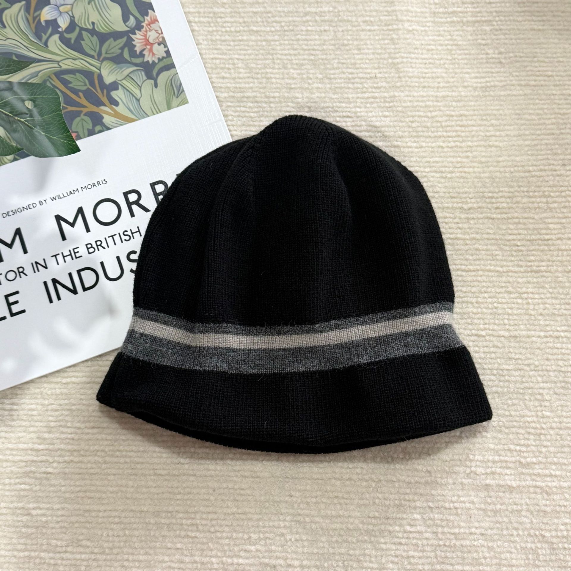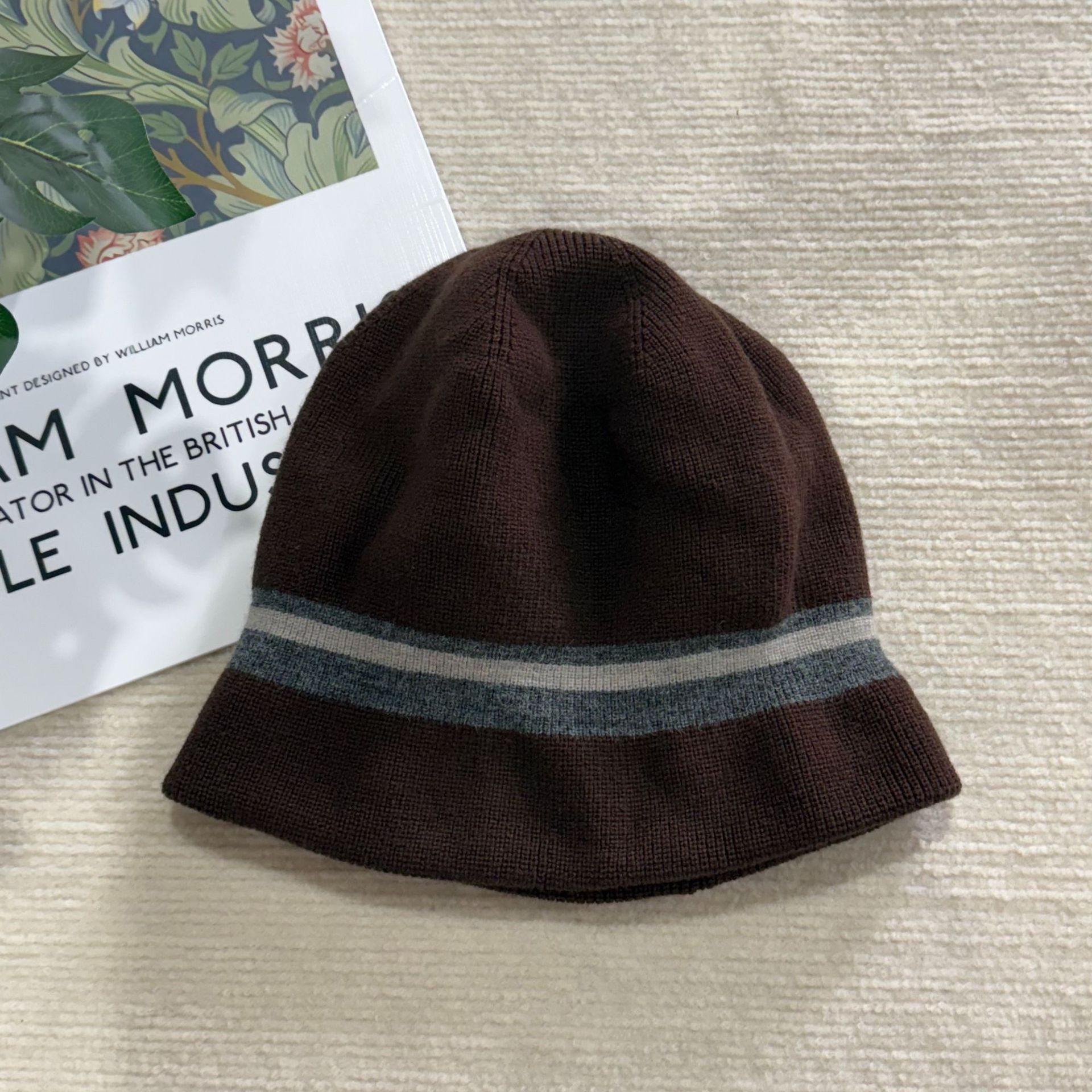 The new Korean style ins color-blocking knitted fisherman's hat for autumn, a warm striped woolen hat, a large plate that shows off the face, and a small pile hat