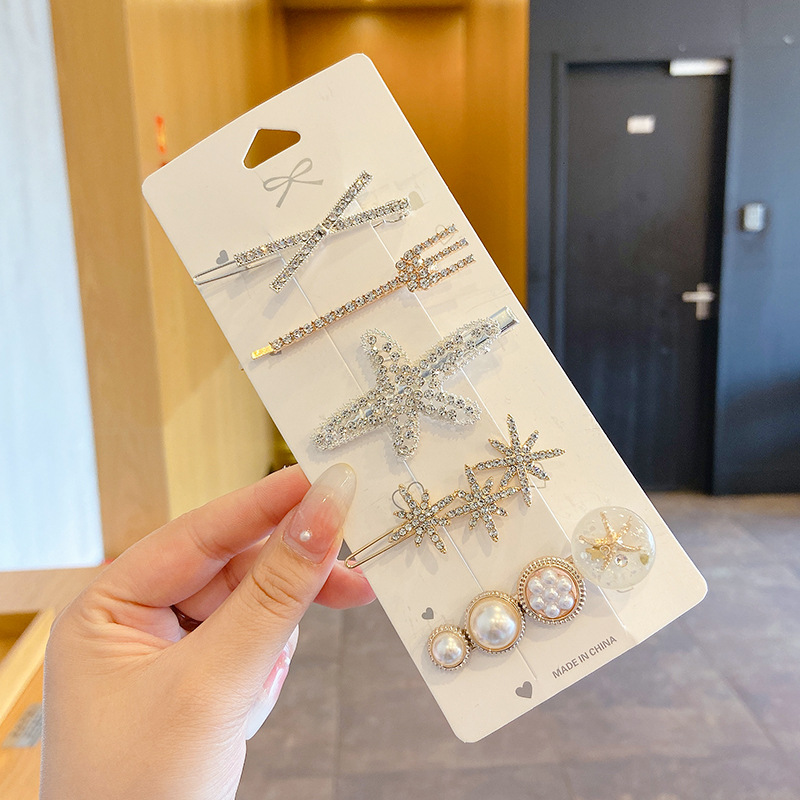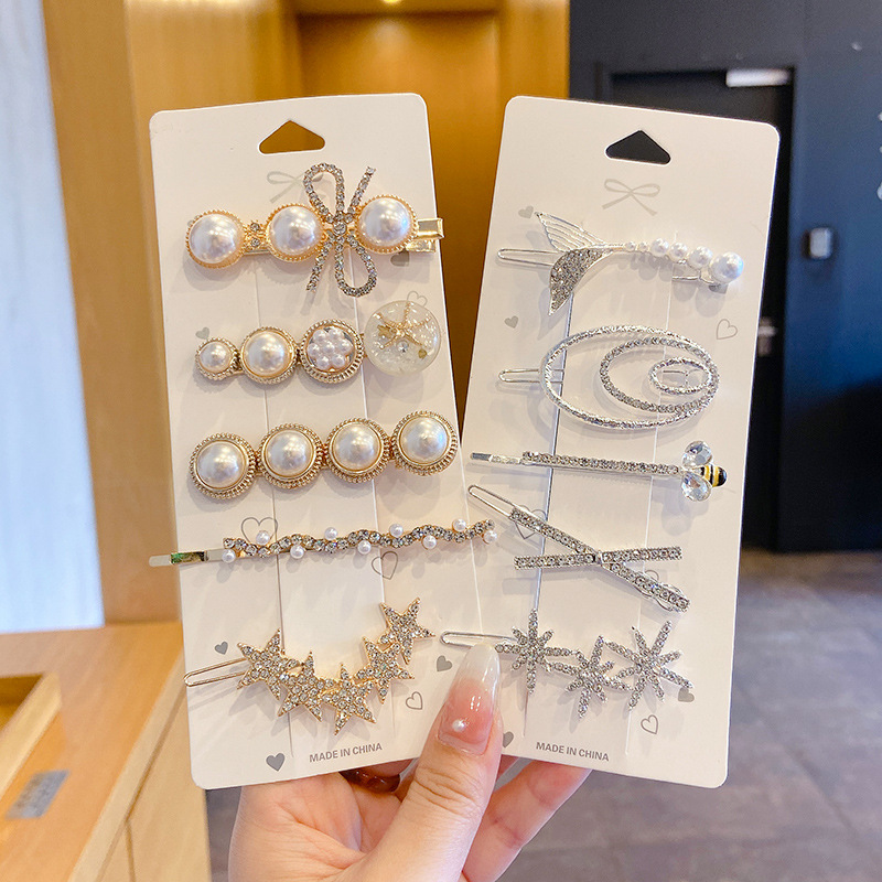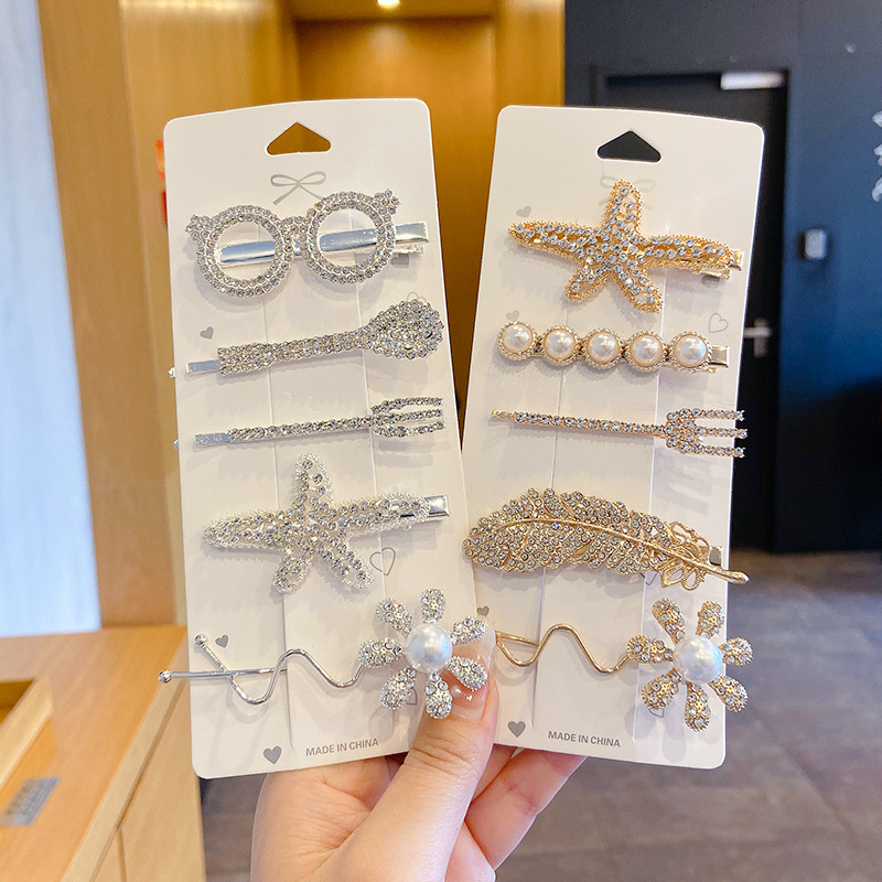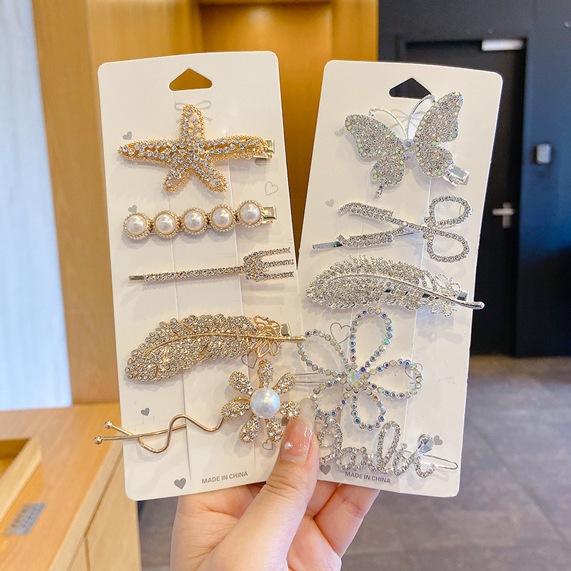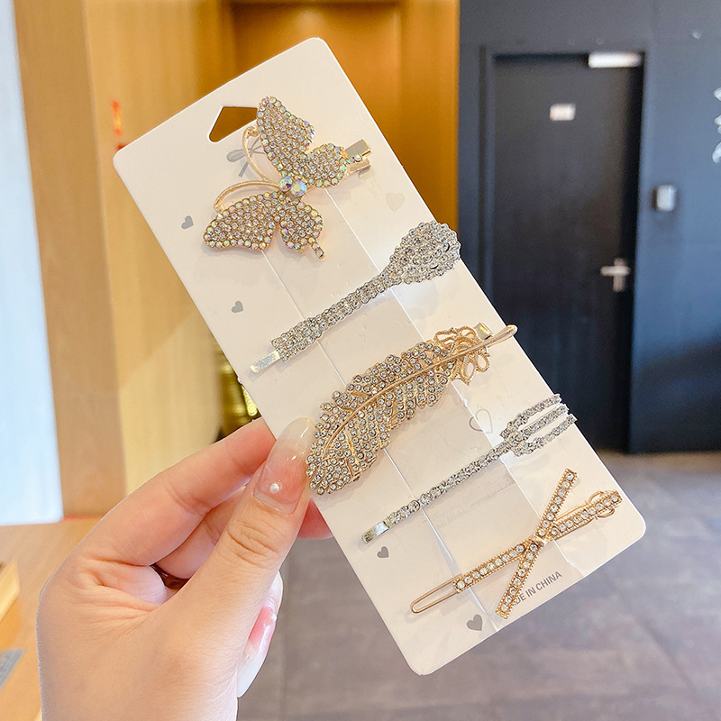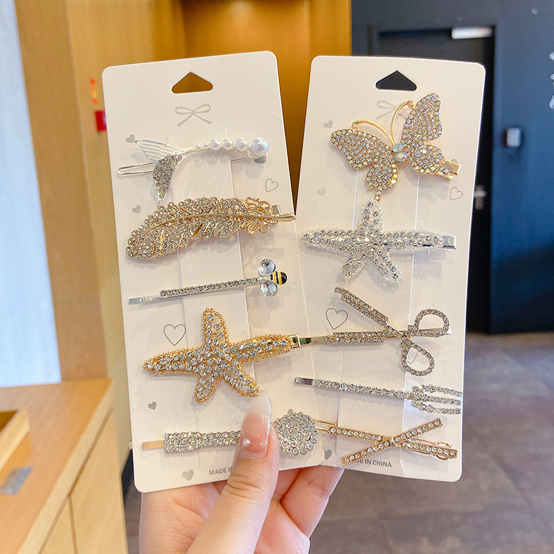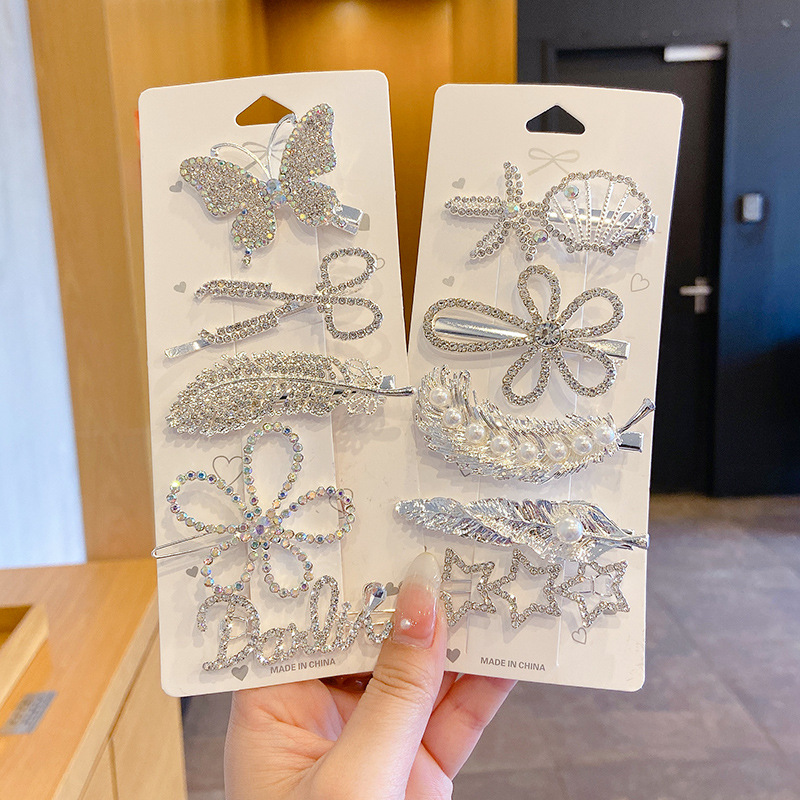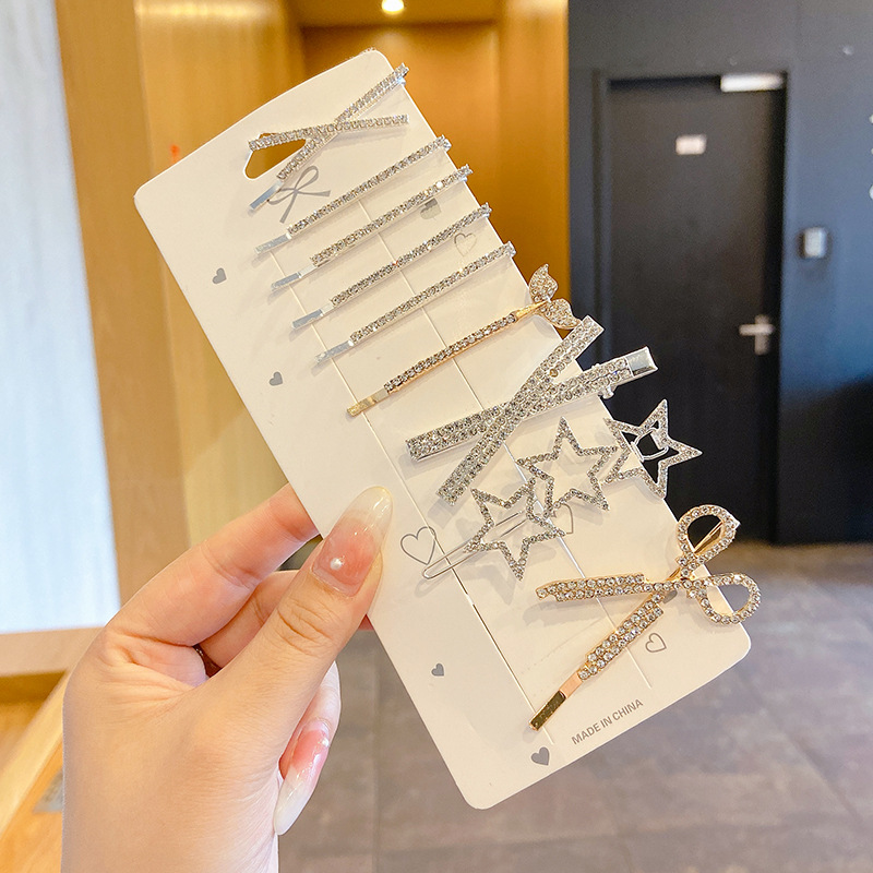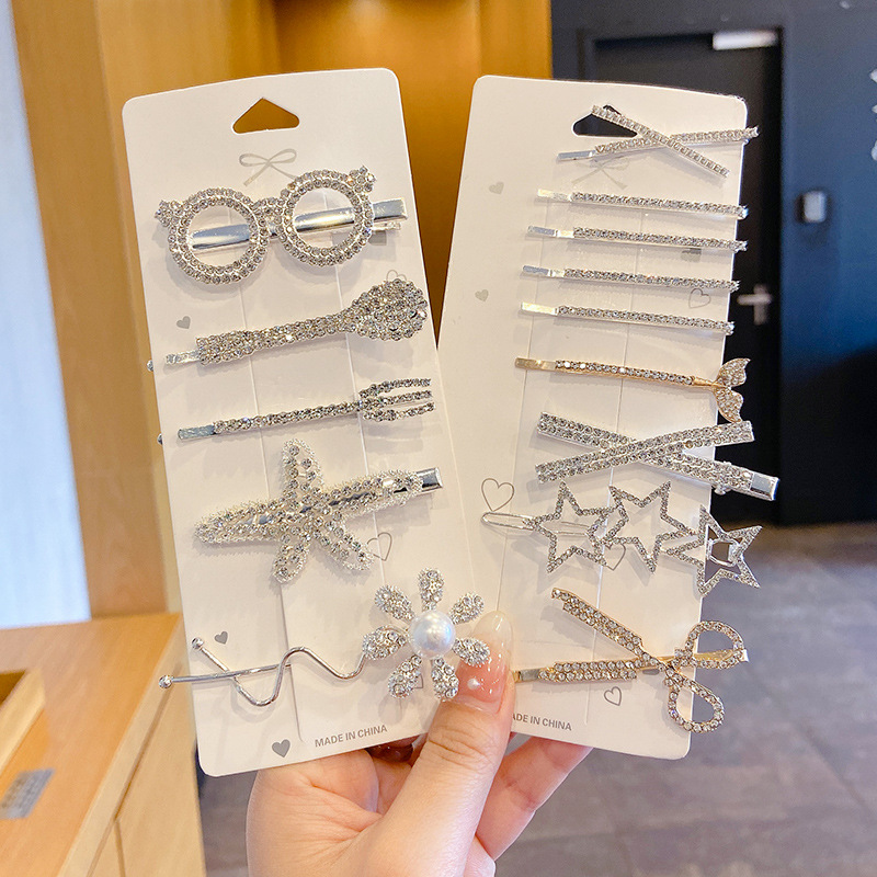 The new Korean version of the girl's hair clip, water diamond clip headwear, and the popular side one-line clip bangs hairpin in 2024
