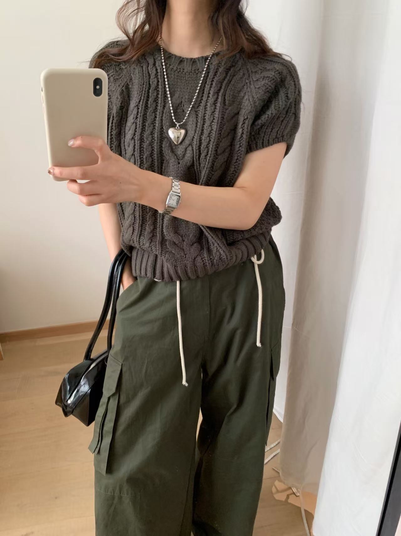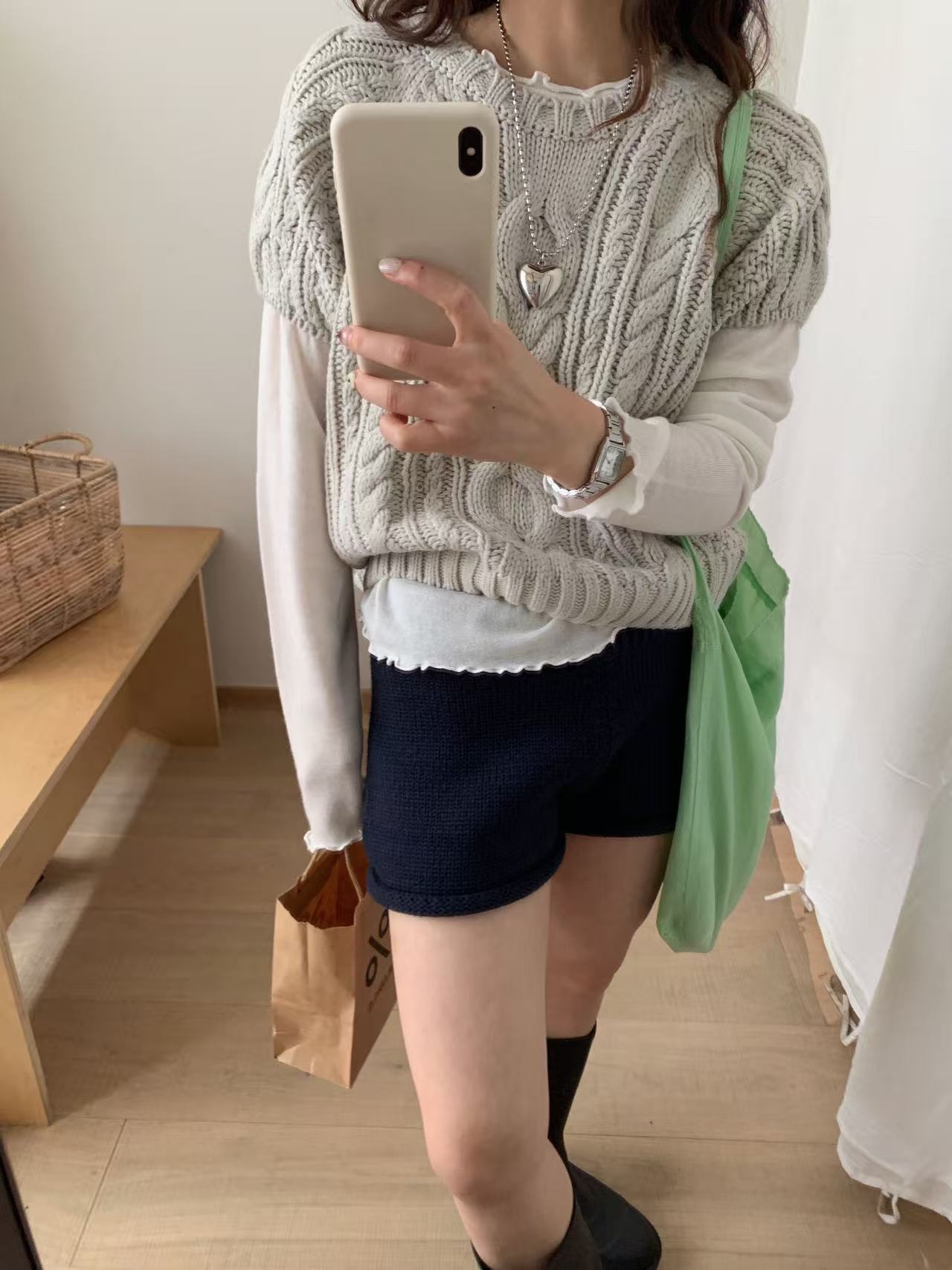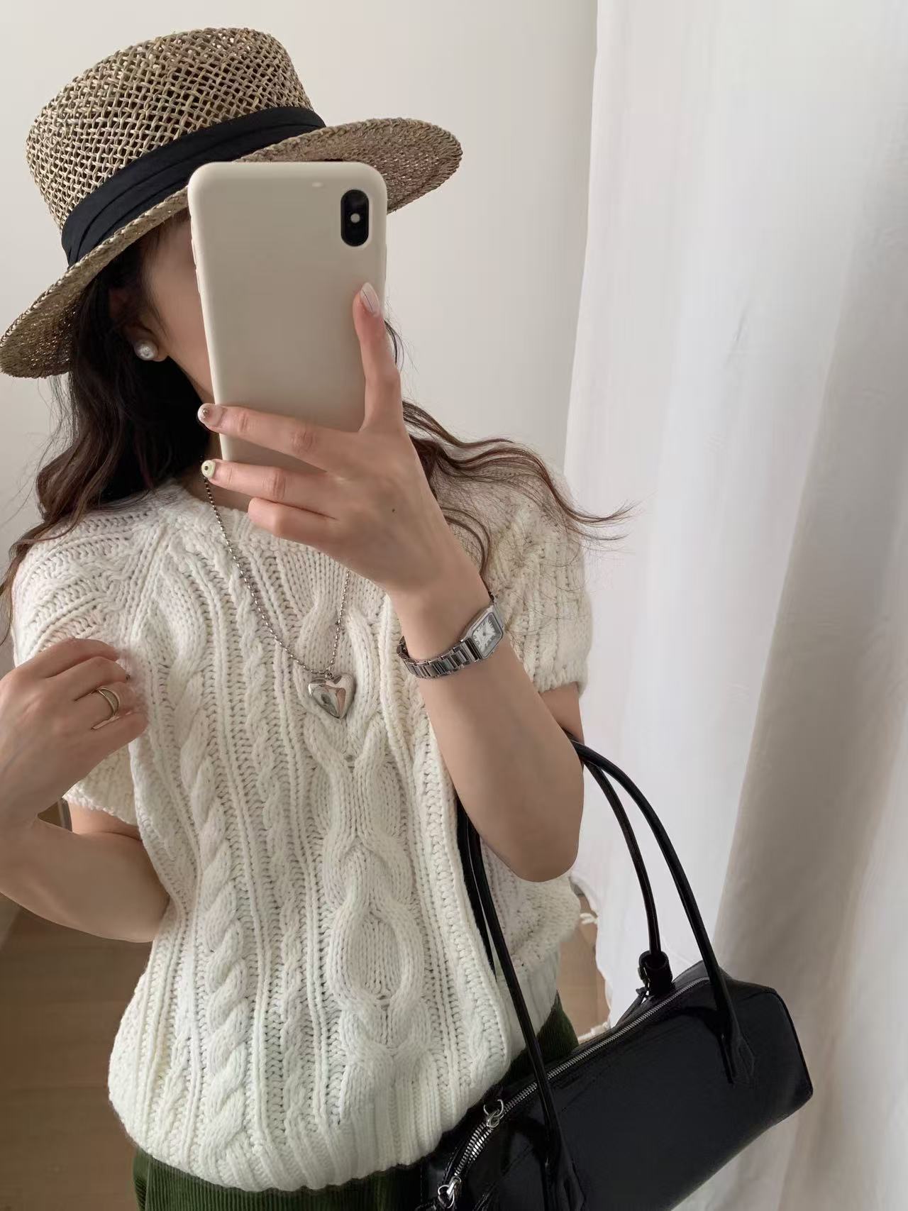 The new Korean women's clothing G1429 for autumn and winter features a retro braided short-sleeved round-neck layering with a knitted sweater underneath