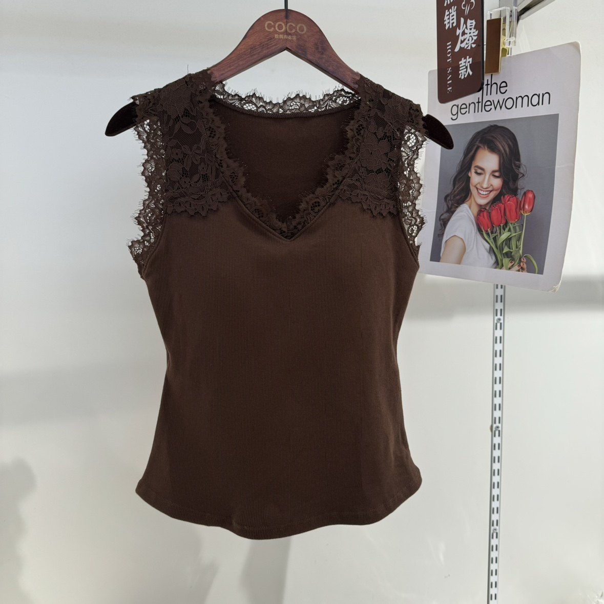 The new lace sexy V-neck wide-band slimming vest, women's one-piece cup, comfortable base layer and strappy top are trendy