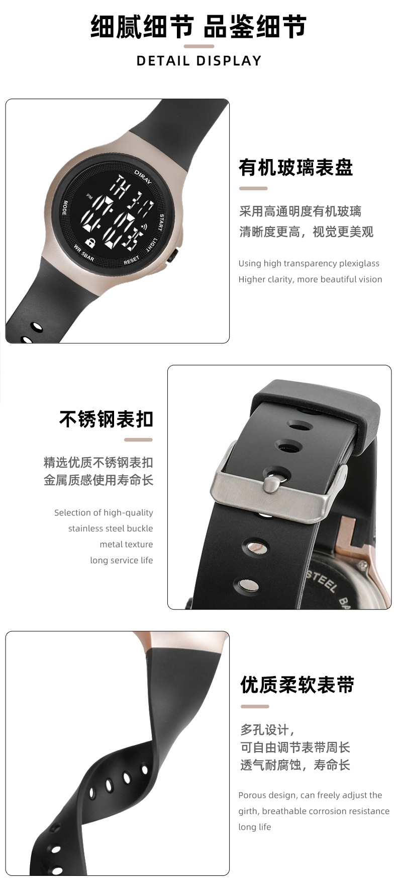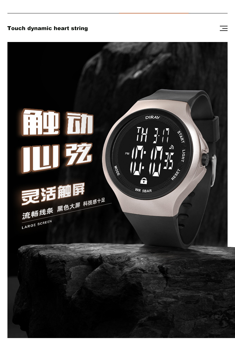 The new men's electronic watch from Dirui features an intelligent touch screen for timing, a luminous watch with a high-end feel, and is waterproof. It's a genuine product for students and women
