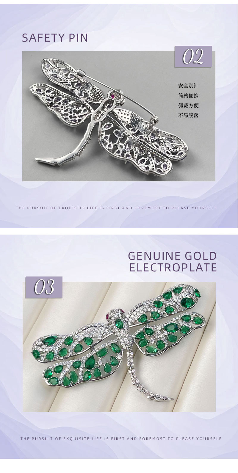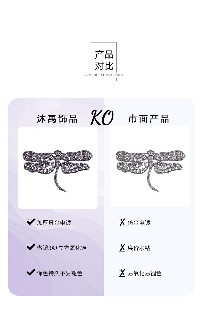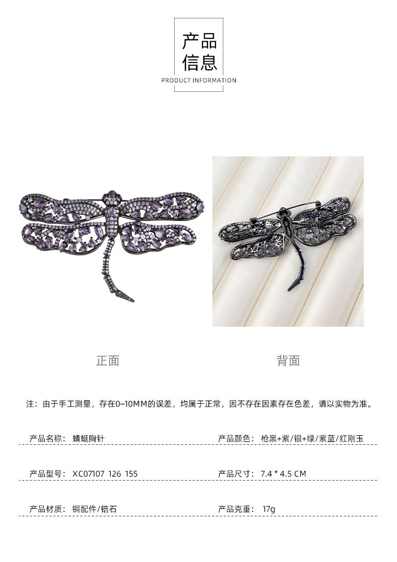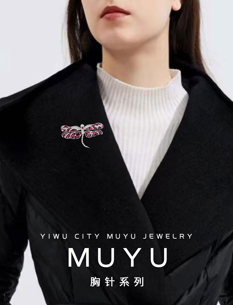 The new micro-inlaid zirconium dragonfly brooch exudes a light luxury and high-end style. It is a fashionable insect corsage suit jacket accessory and a women's brooch