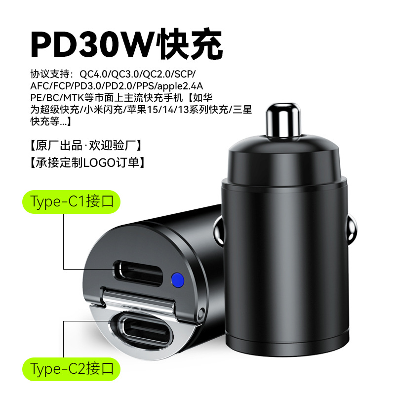 The new qc3.0 car charger with a super fast charging pull ring dual usb alloy 5a car charger and a 30w pd mini car charger