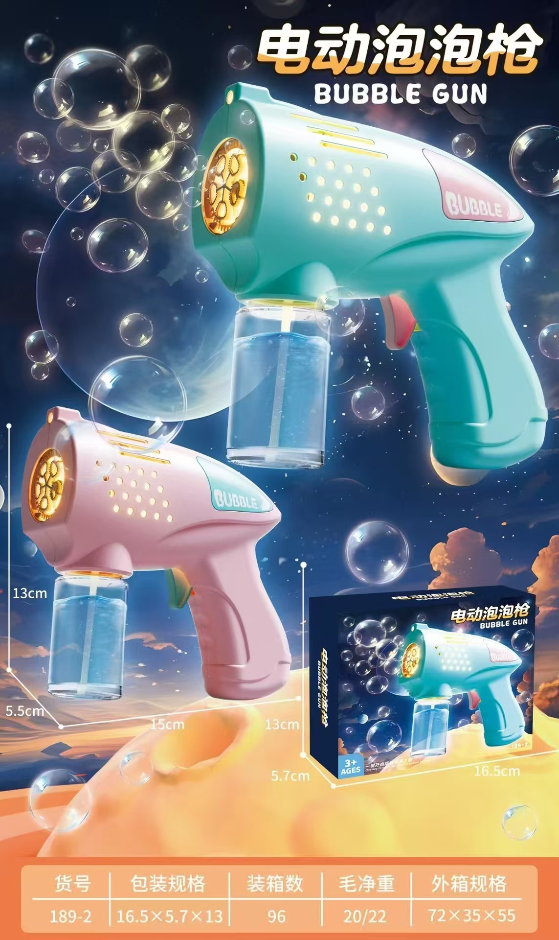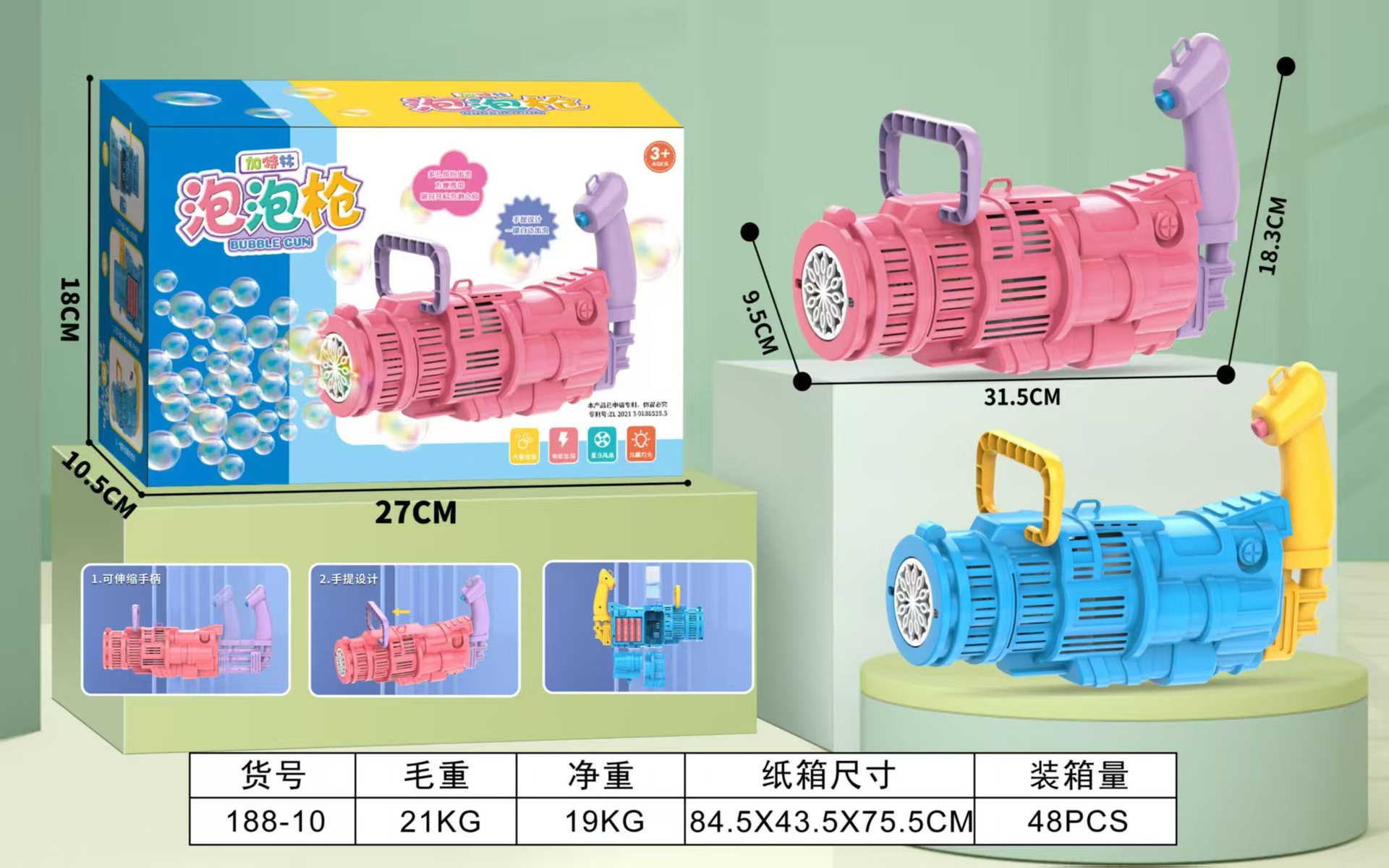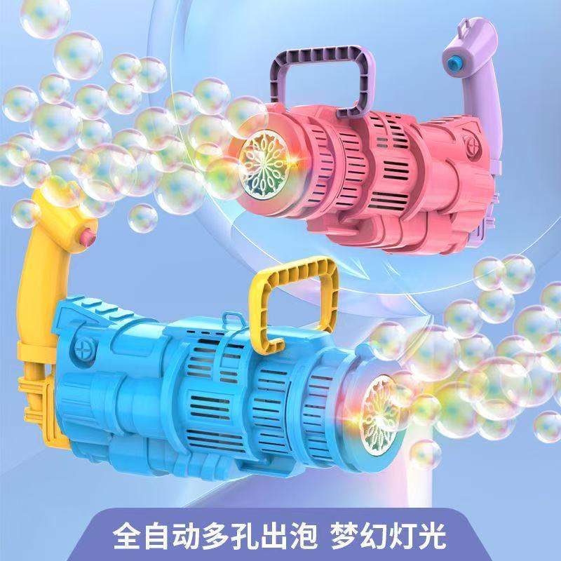 The new rocket light bubble machine of the same style as Douyin, the popular Gatling bubble gun, is an automatic bubble-blowing children's toy