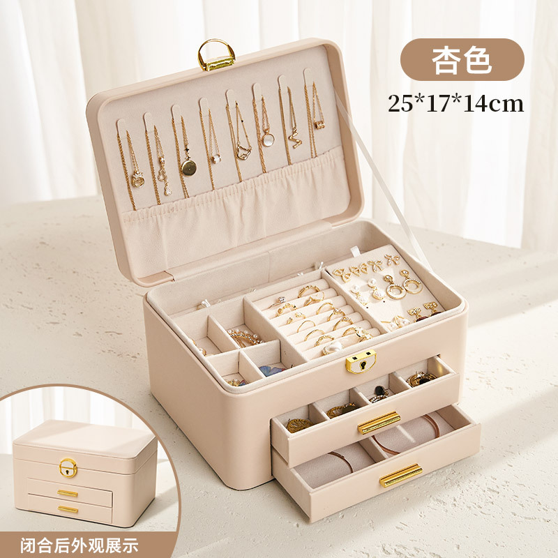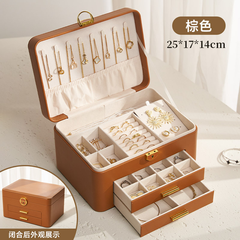The new storage box features a large capacity with a lock, high-end and exquisite leather jewelry box, multi-functional storage box, and a waterproof drawer style