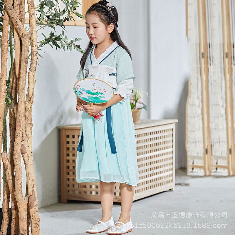 The new stylish and retro Hanfu girls' and children's clothing set of "National Trend 2025" is a trendy two-piece short-sleeved set from Zhongda Tong