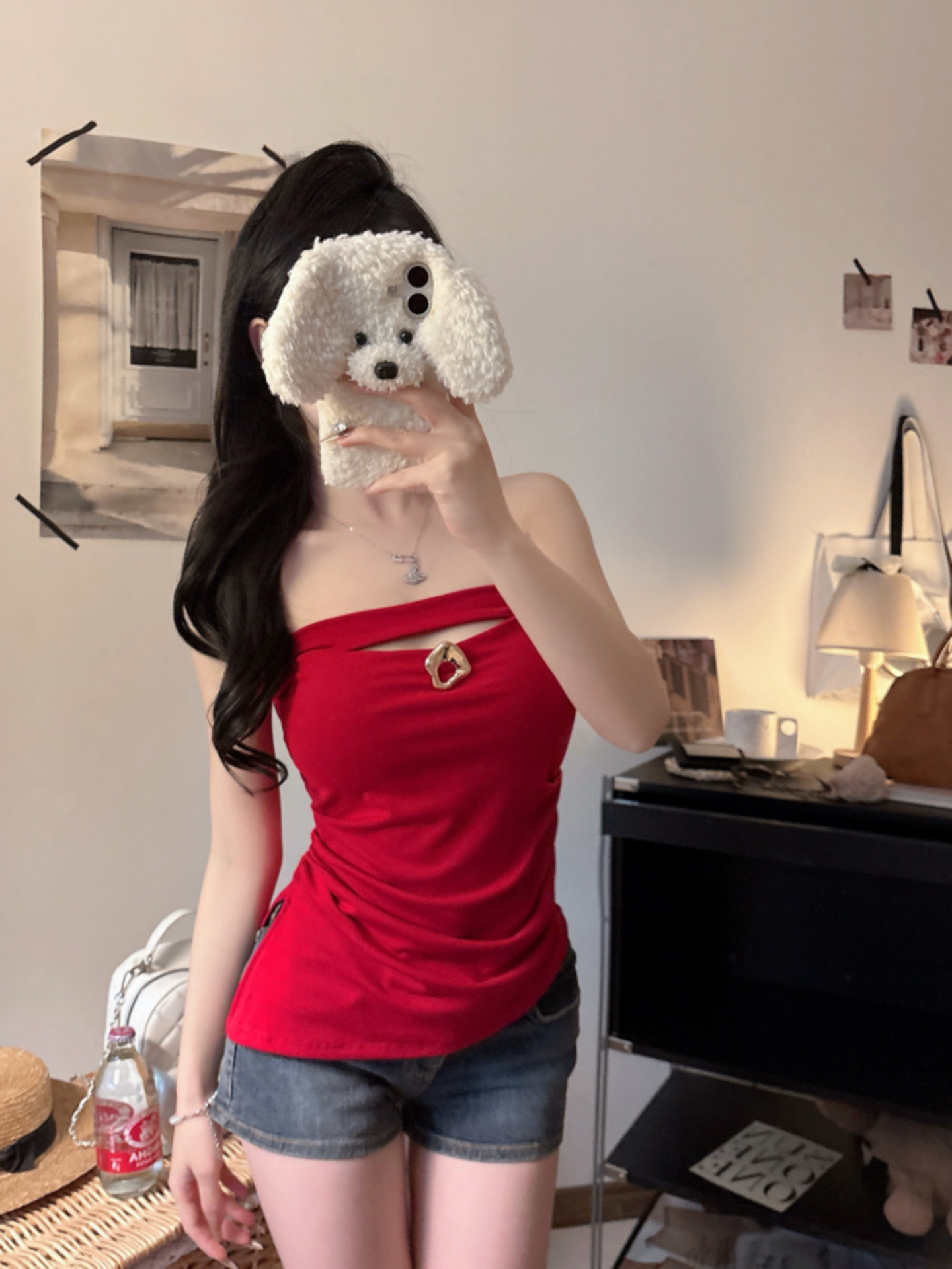 The new summer style with a spicy girl design features a hollowed-out irregular hem and a one-piece body shape that is slimming and form-fitting. It comes with a chest pad and is versatile for women
