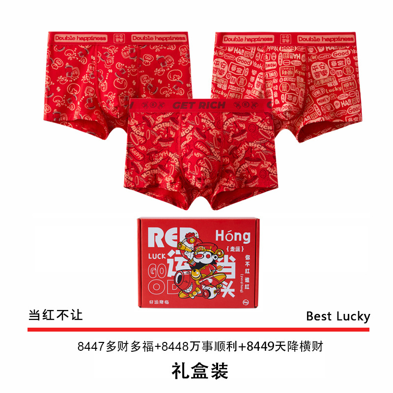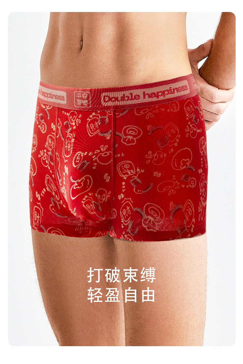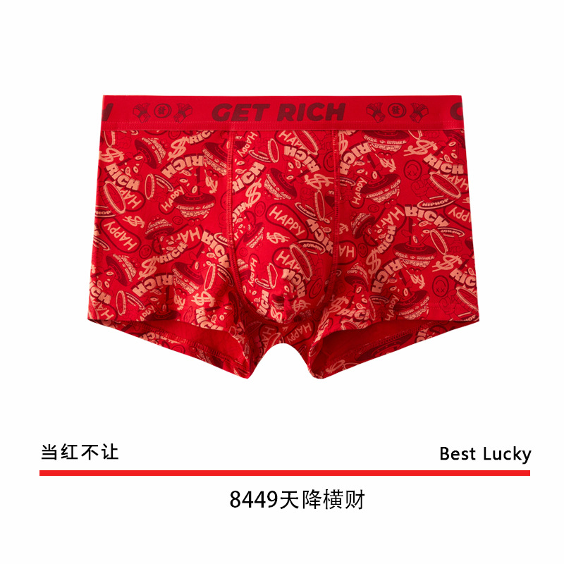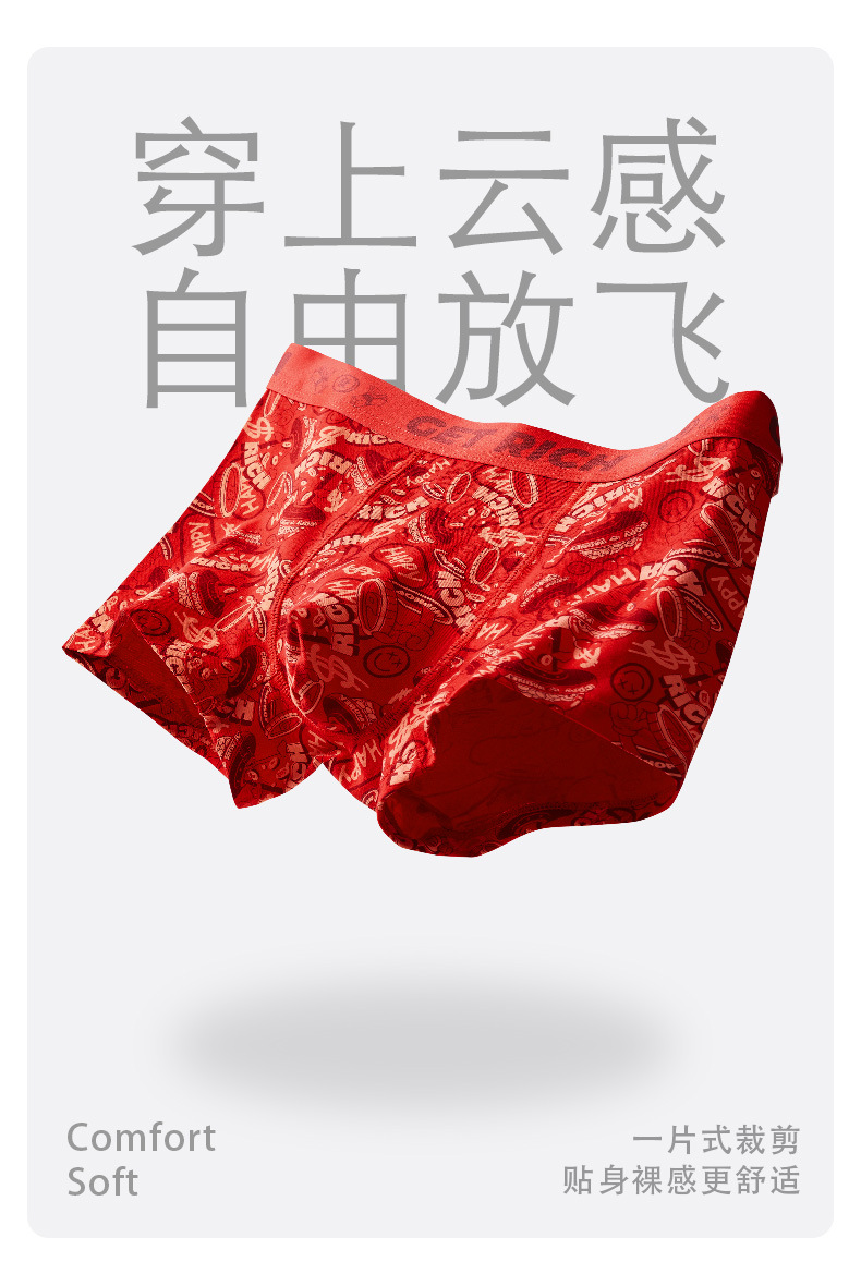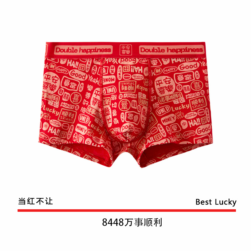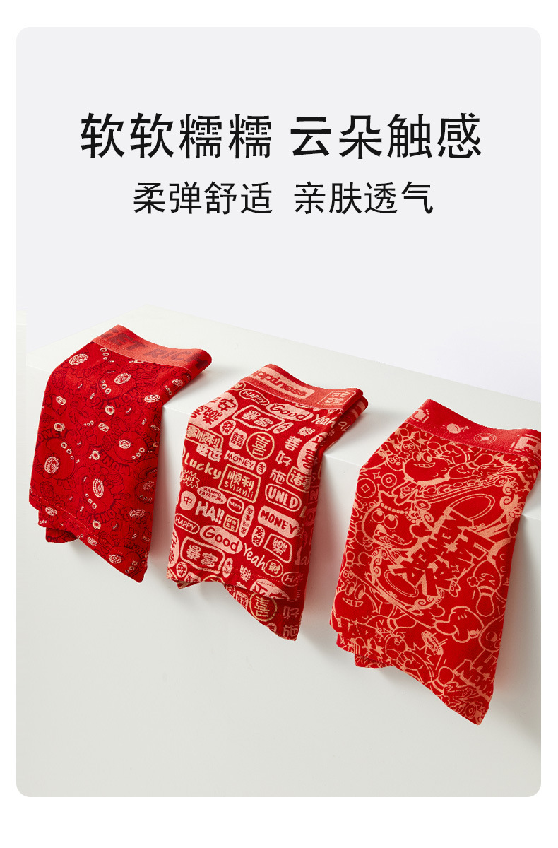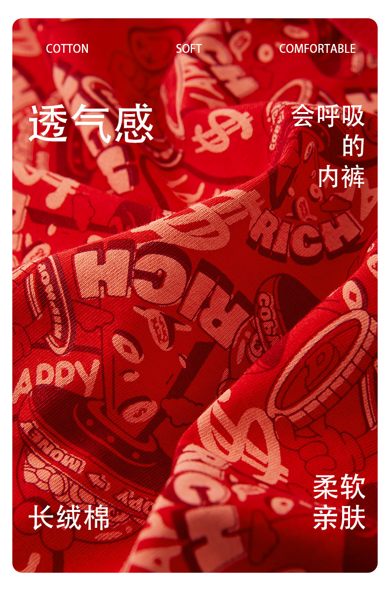 The New Year's trend is not to let down the new red men's underwear. Pure cotton wedding trend printed skin-friendly antibacterial underwear for men