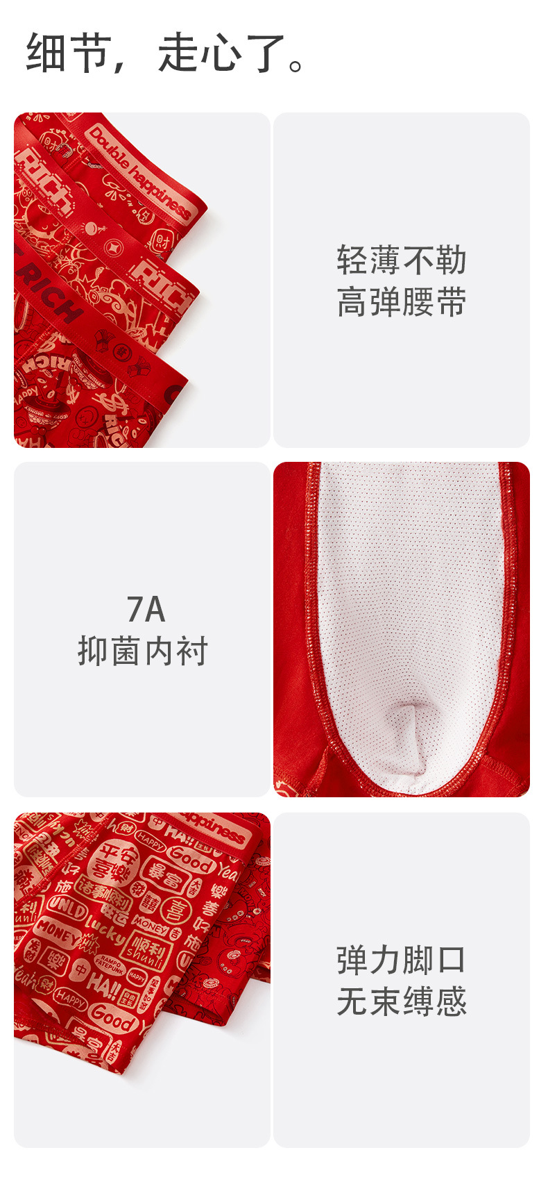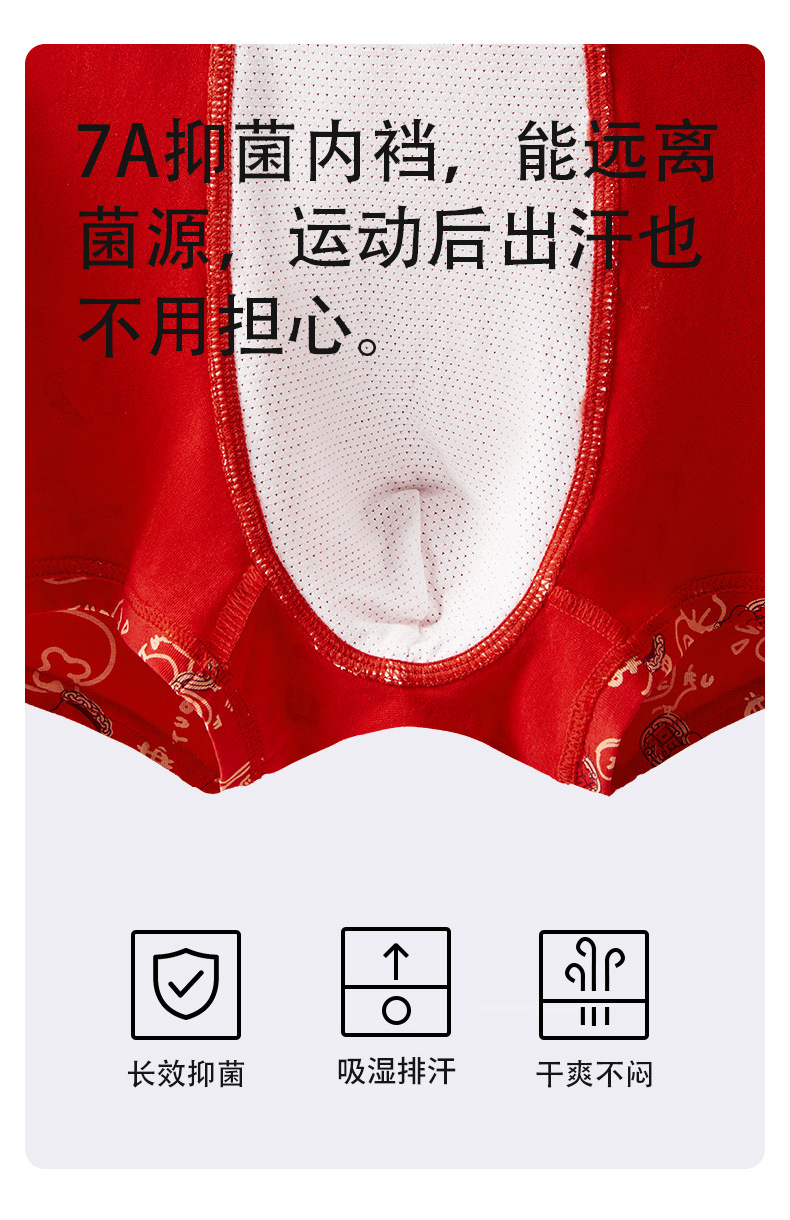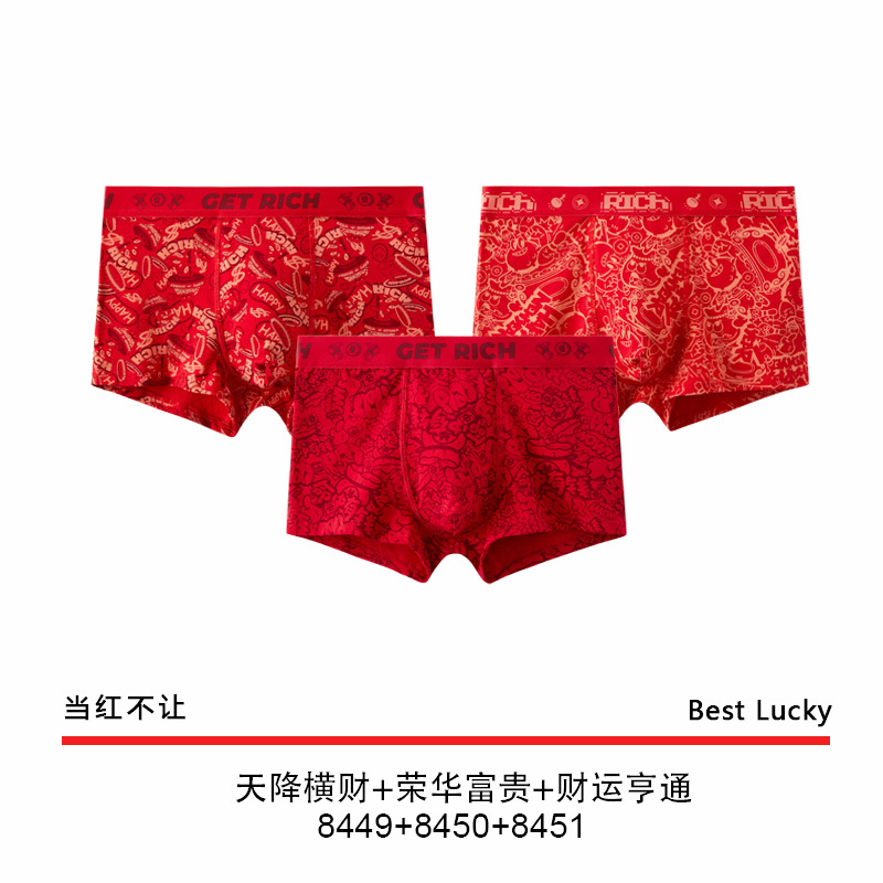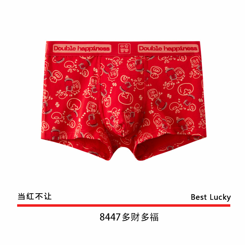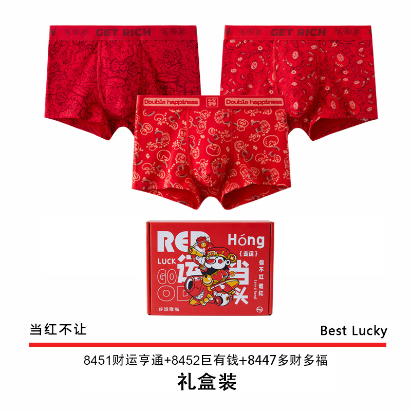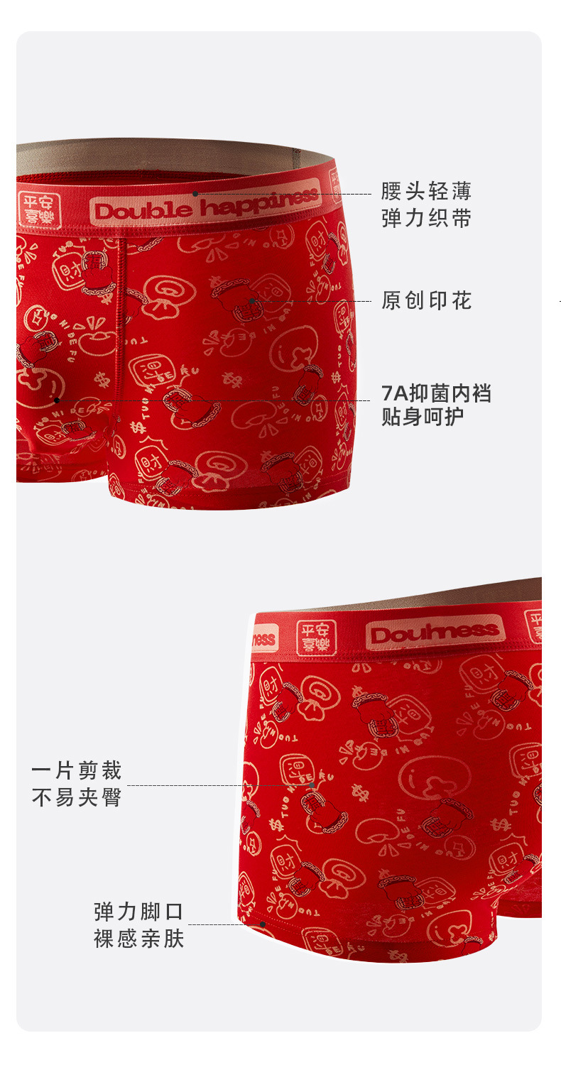 The New Year's trend is not to let down the new red men's underwear. Pure cotton wedding trend printed skin-friendly antibacterial underwear for men