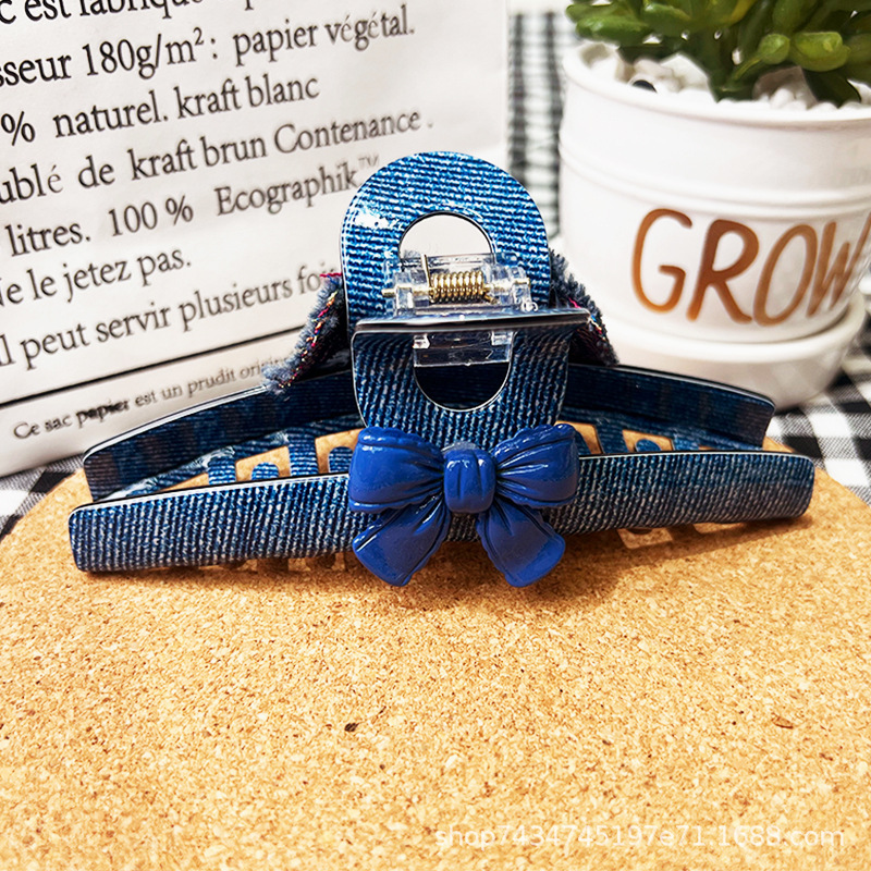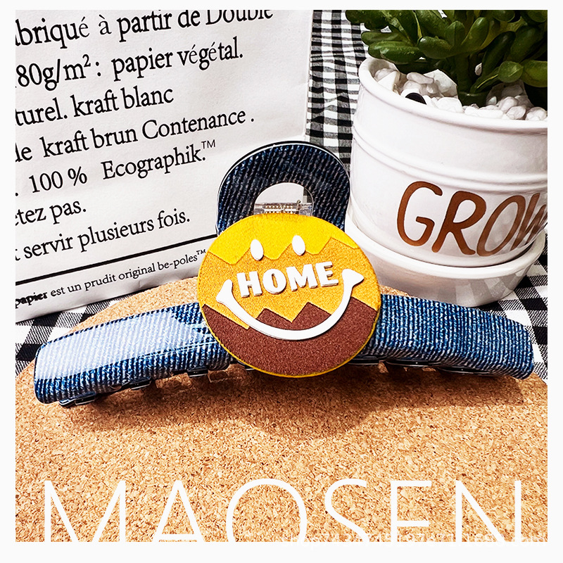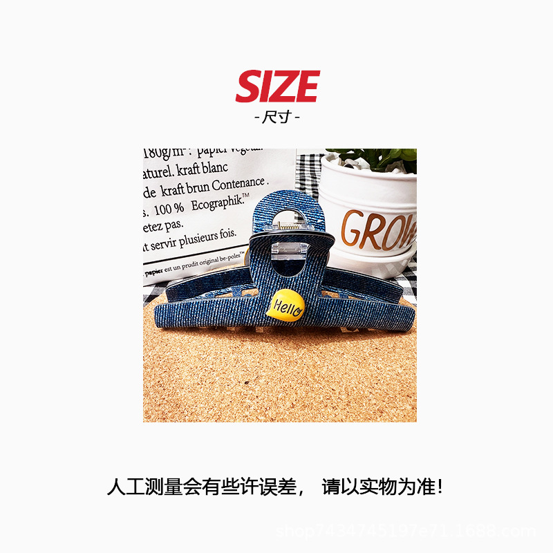 The original design of the smiling denim shark clip by Boss Brother's family imitates the denim grid style, presenting a unique Korean and Japanese style for women