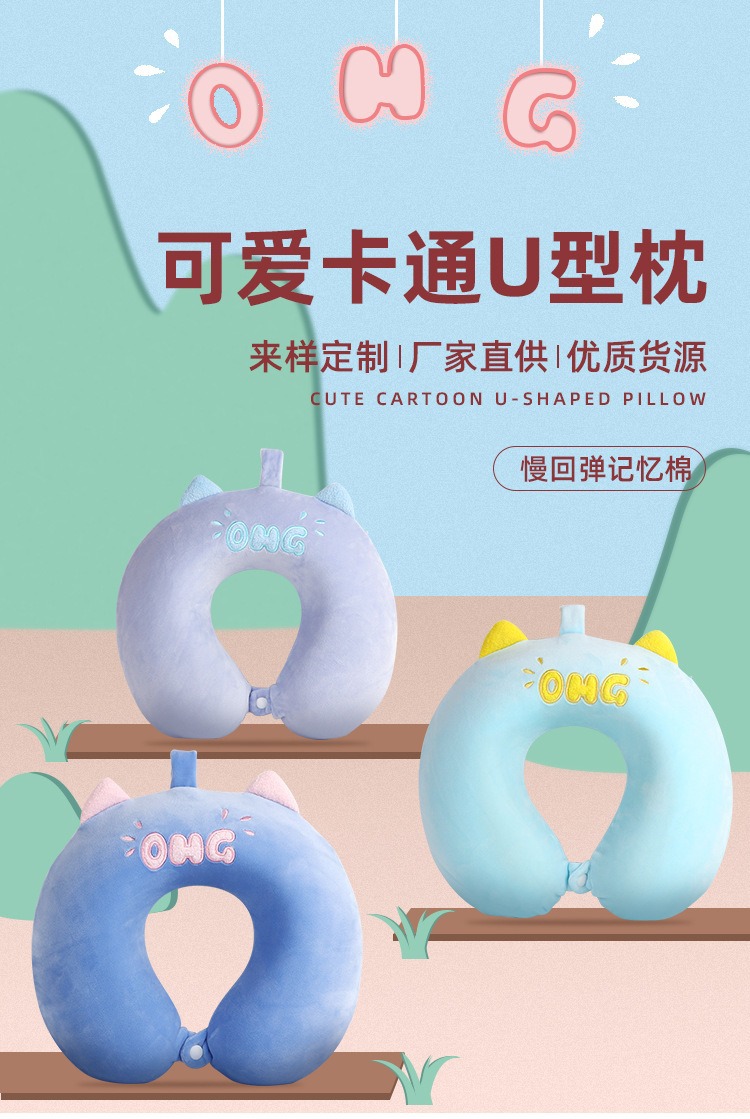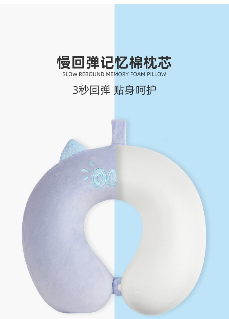 The original manufacturer's cartoon memory foam U-shaped pillow, towel embroidery process, office, lunch break, portable travel pillow, suitable for multiple scenarios