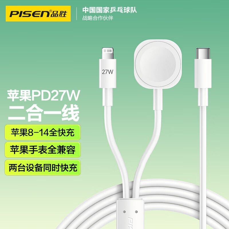 The Pisen Smart 2-in-1 Watch wireless charger is compatible with the Apple 15promax13iWatch 3-in-1 data cable