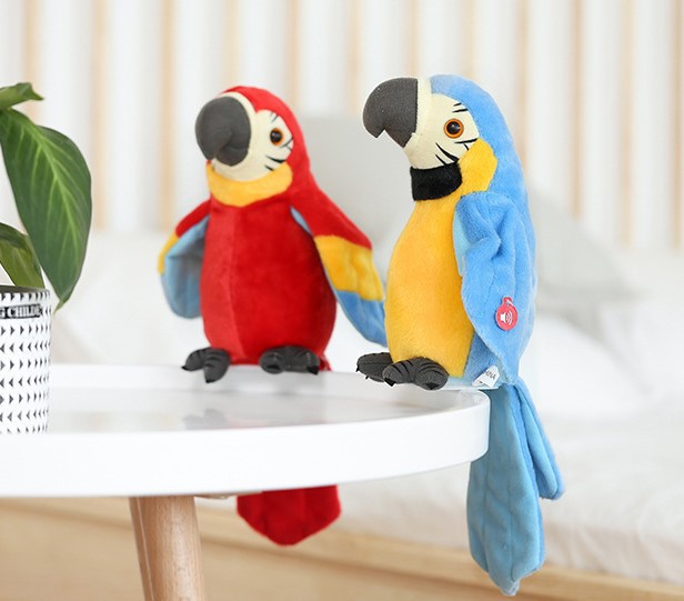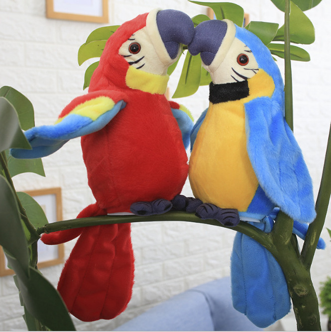 The recording parrot learns to speak. The parrot can twist, flap its wings and imitate the tongue. The parrot is a children's electric plush toy