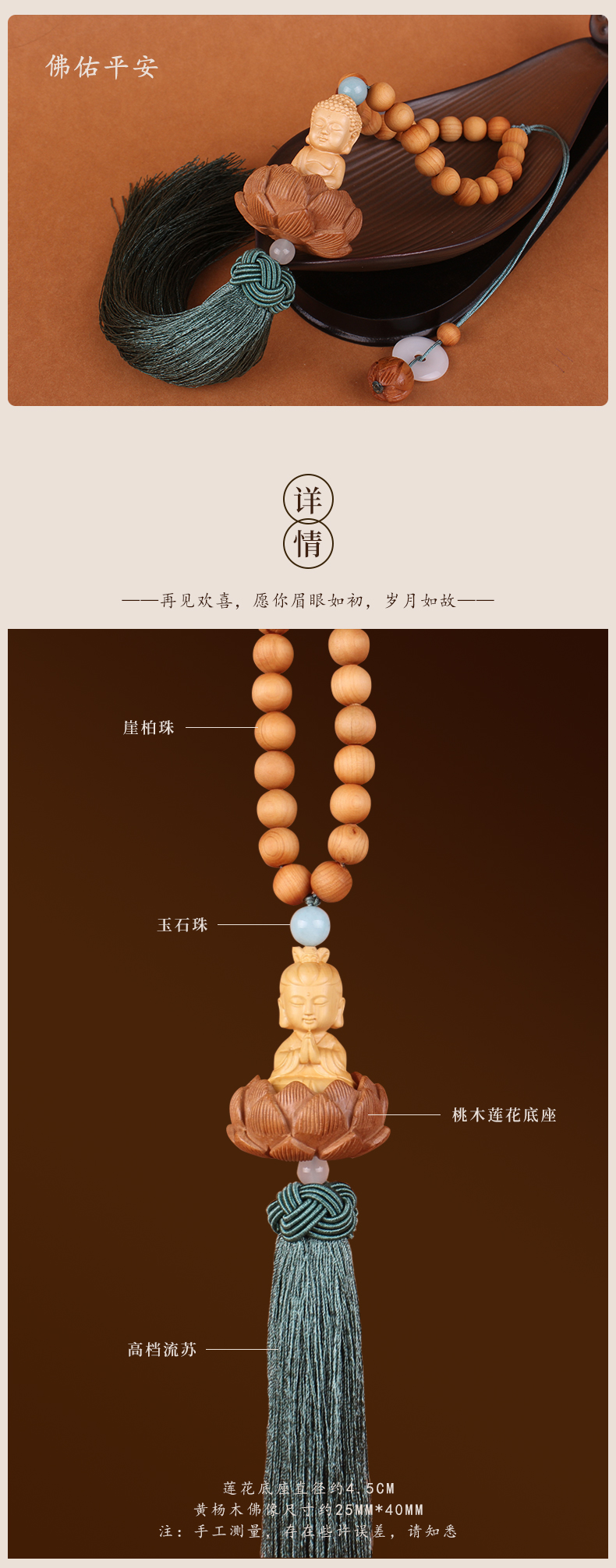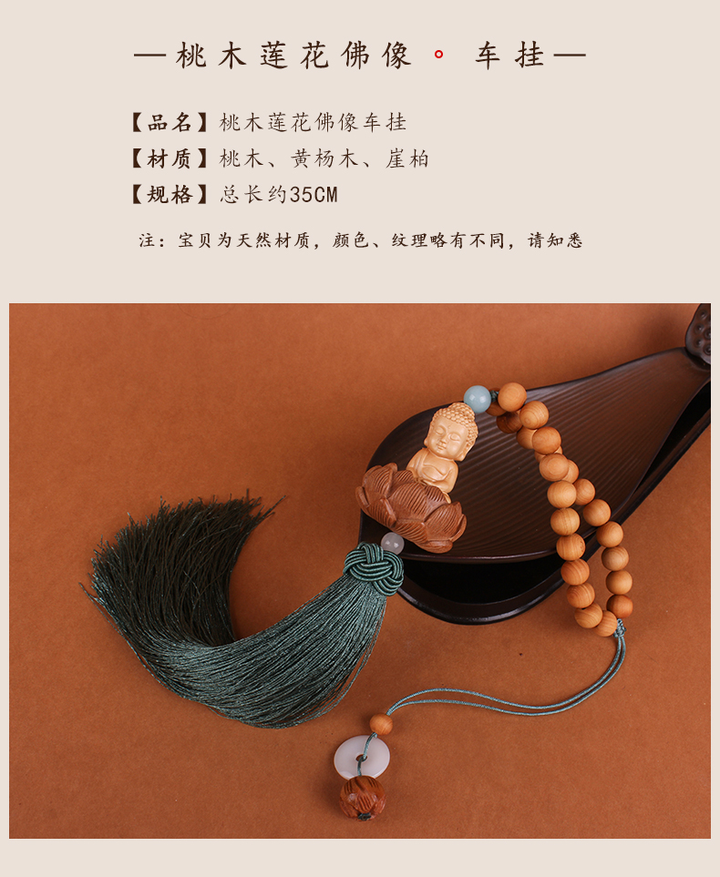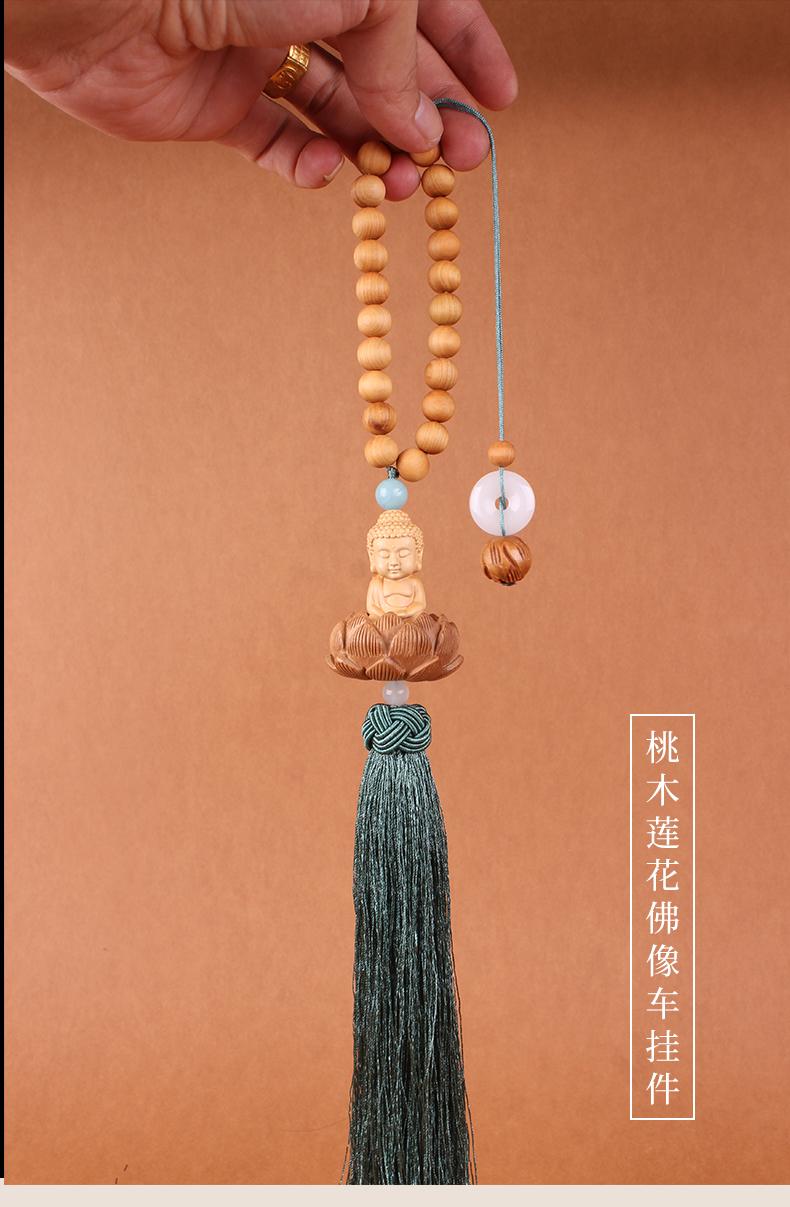 The same style of Lingyin Temple's popular "Safe and Sound" peach wood hand-carved three-dimensional lotus Buddha statue, bringing continuous good luck, car interior rearview mirror, car pendant