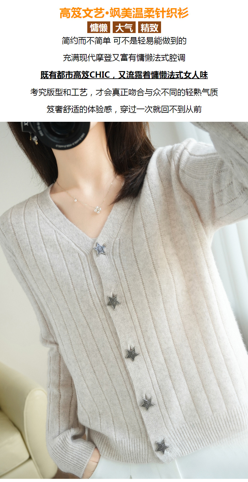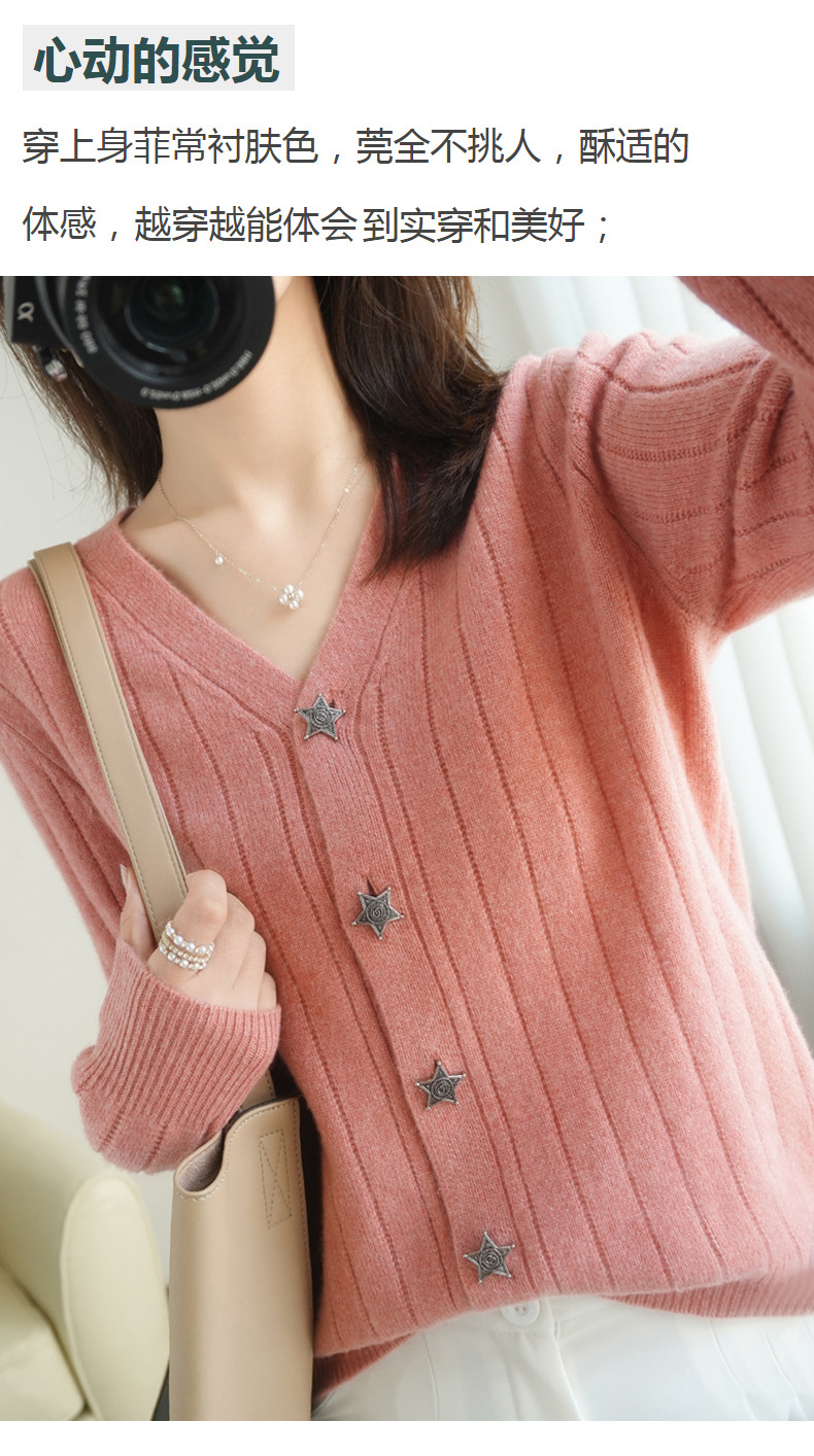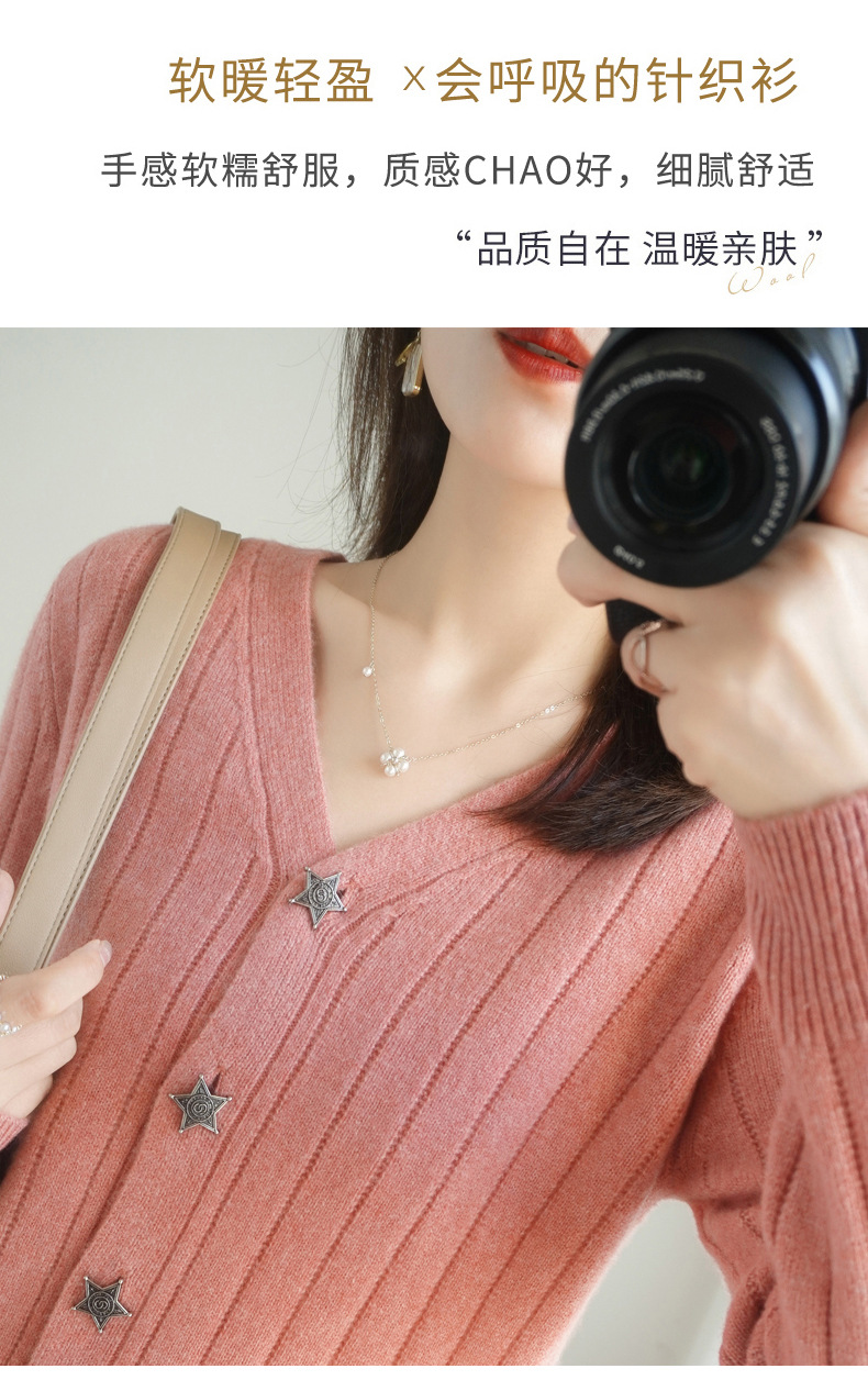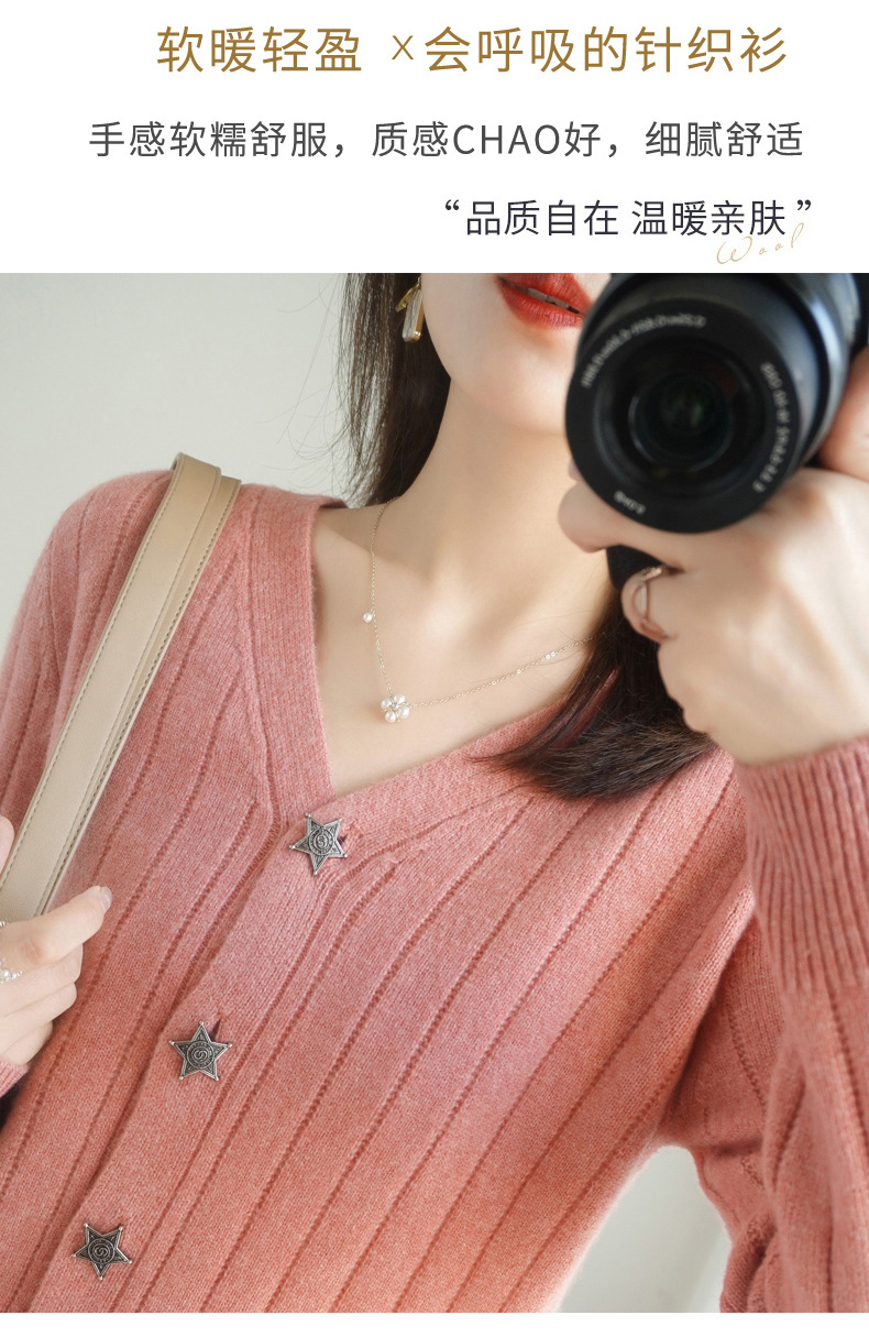 The soft and glutinous wool 2023 autumn/winter new women's V-neck loose and fashionable short coat pairs well with a knitted sweater cardigan