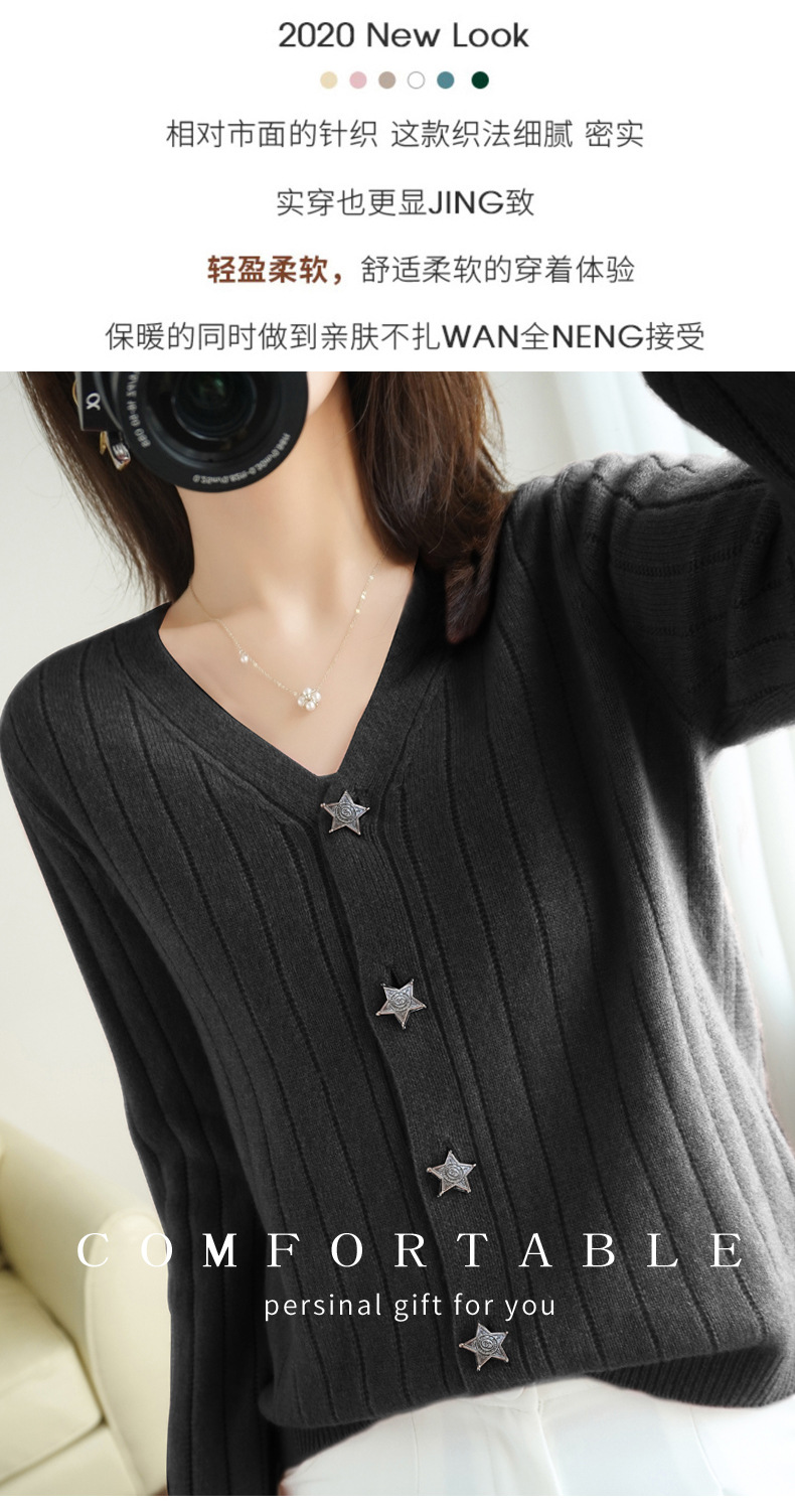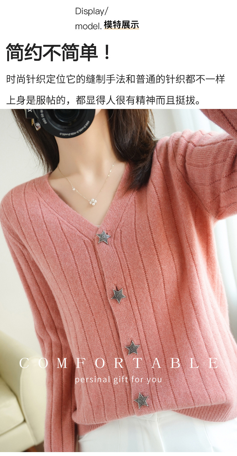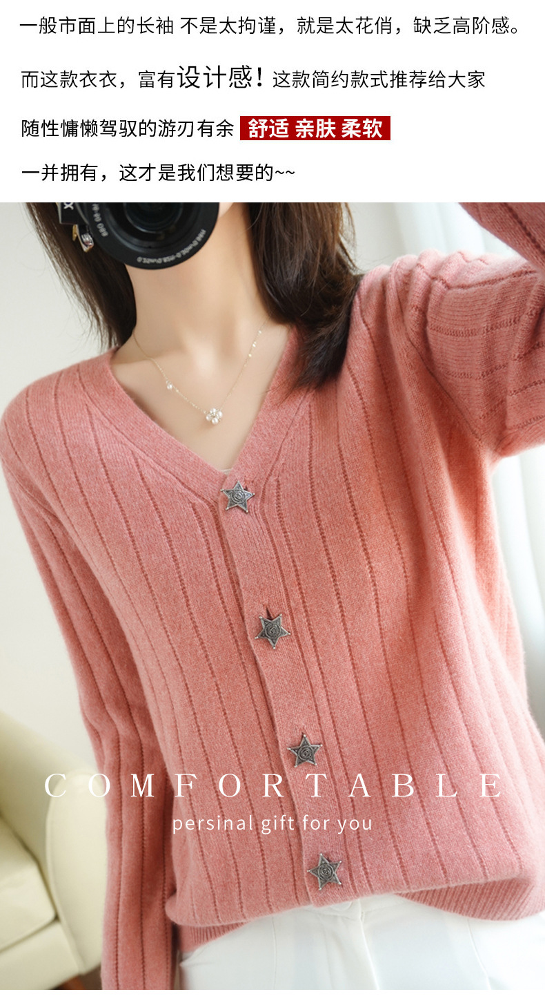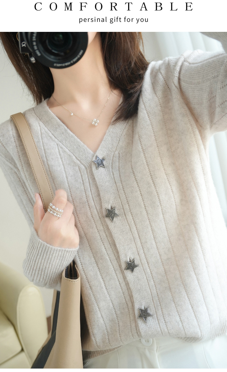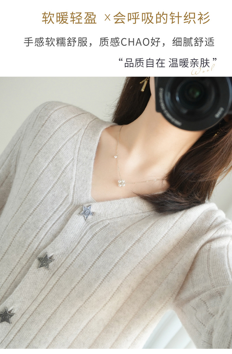 The soft and glutinous wool 2023 autumn/winter new women's V-neck loose and fashionable short coat pairs well with a knitted sweater cardigan