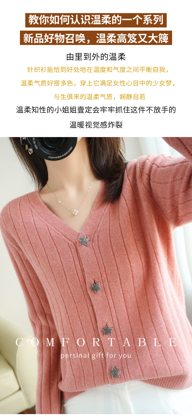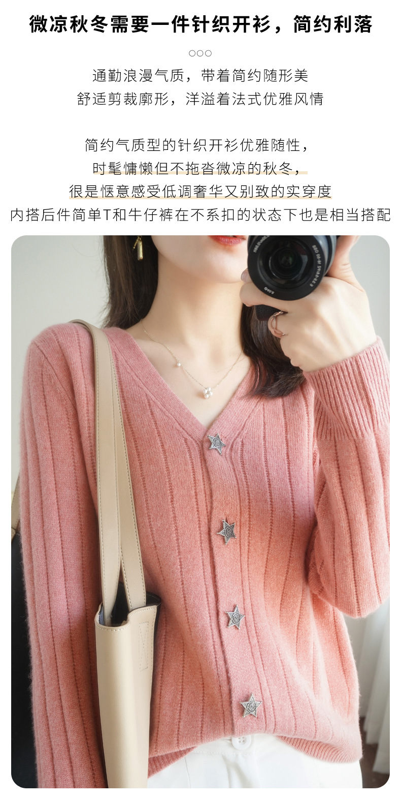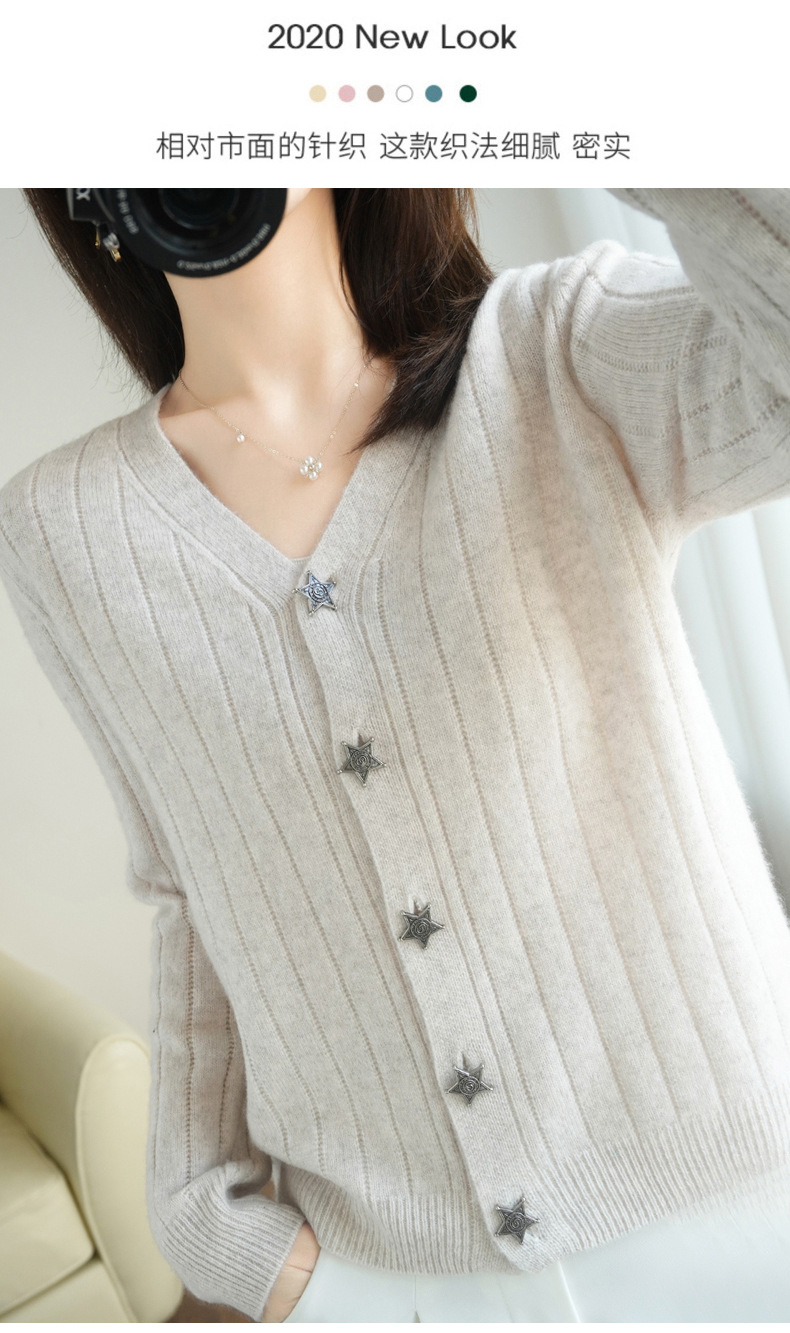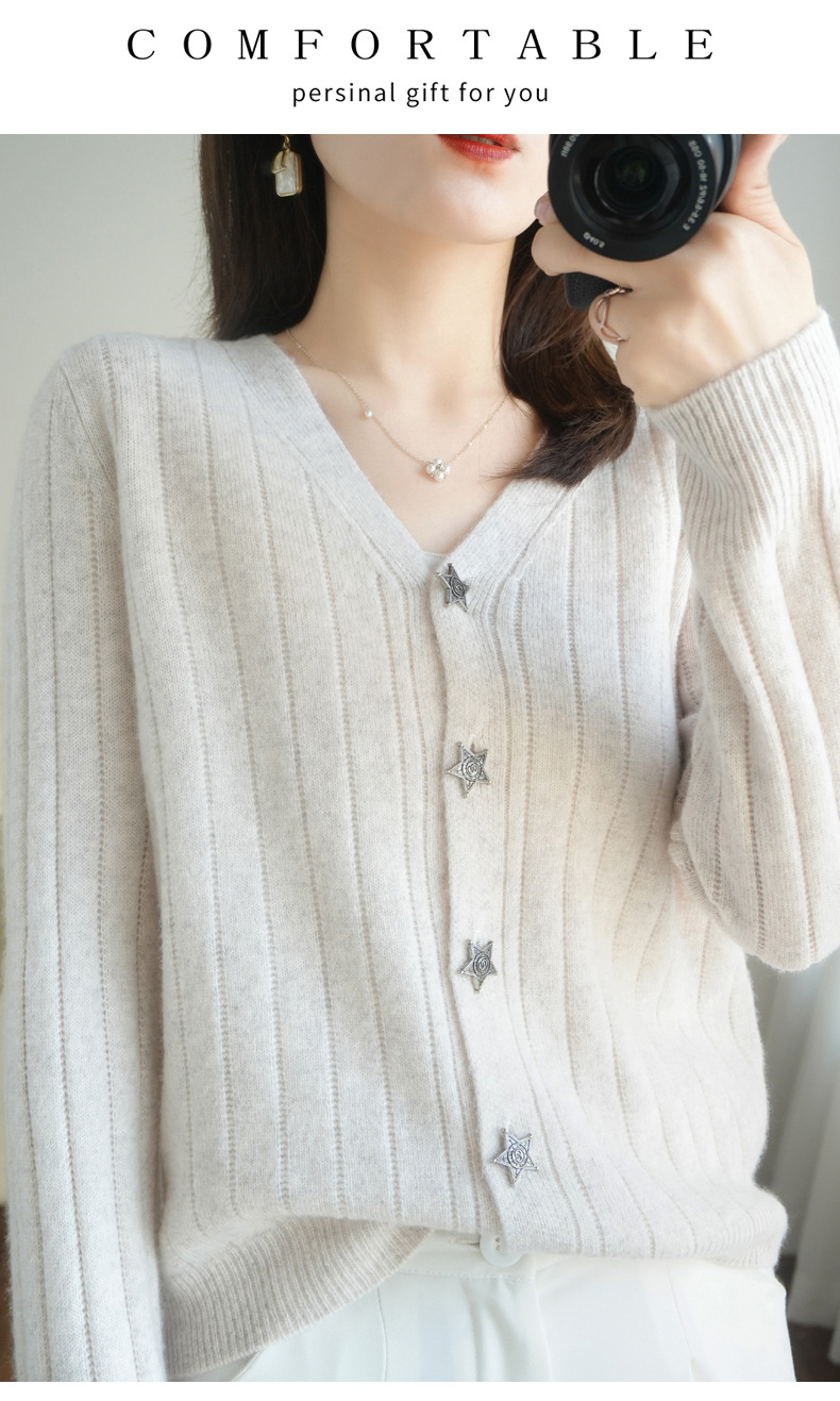 The soft and glutinous wool 2023 autumn/winter new women's V-neck loose and fashionable short coat pairs well with a knitted sweater cardigan