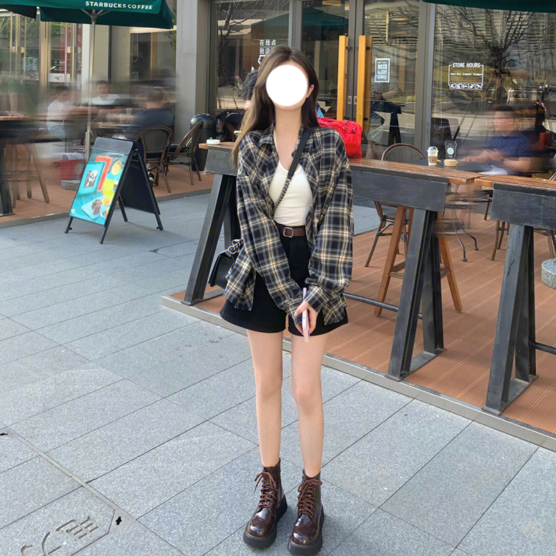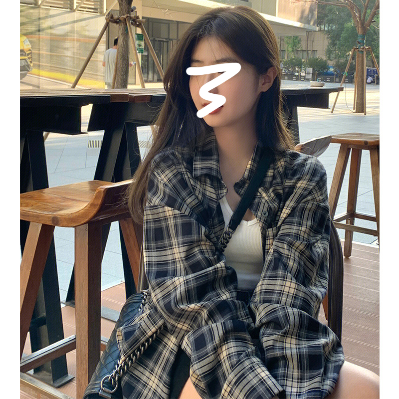 The sweet and laid-back trend of Korean retro long-sleeved checked shirts, loose women's shirts and cardigans for Spring and autumn 2024