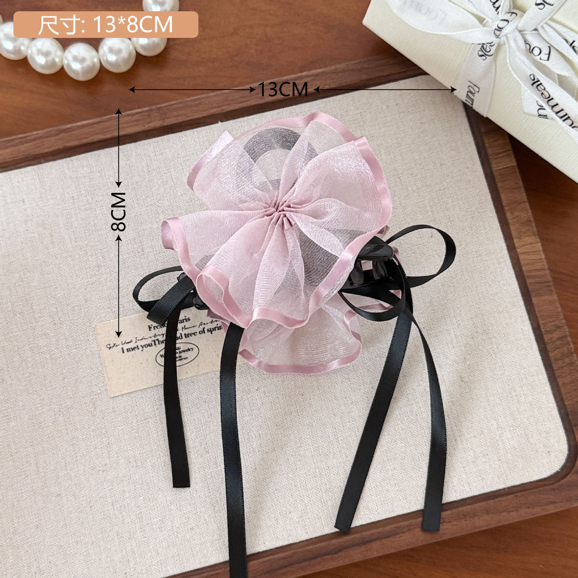 The sweet flower bow, ribbon, spring clip, half hair clip at the back of the head, 2025 new style hair accessory, elegant headwear