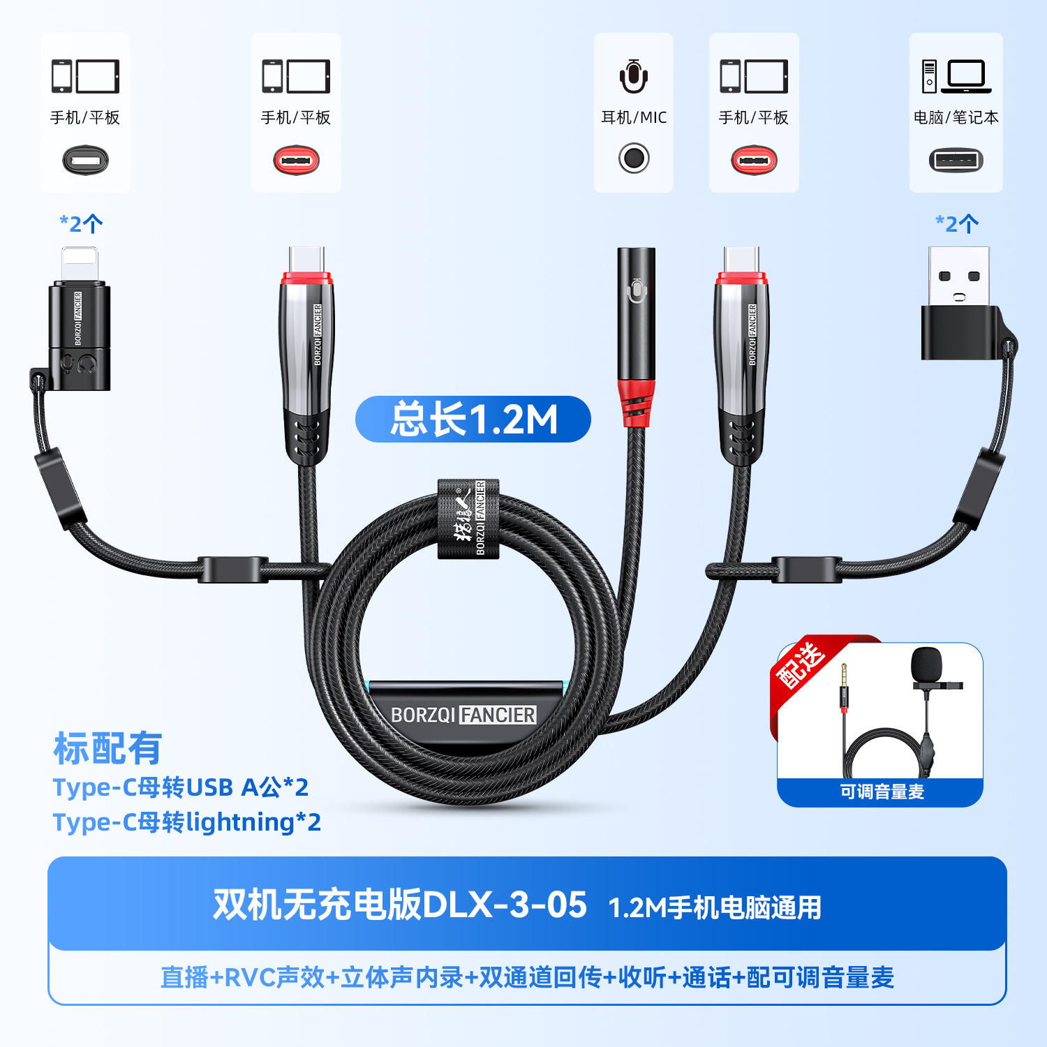 The black dual-device DLX-3-12 supports live voice connection PK, ear-monitor version call recording, multi-party calls, and teleconference functions
