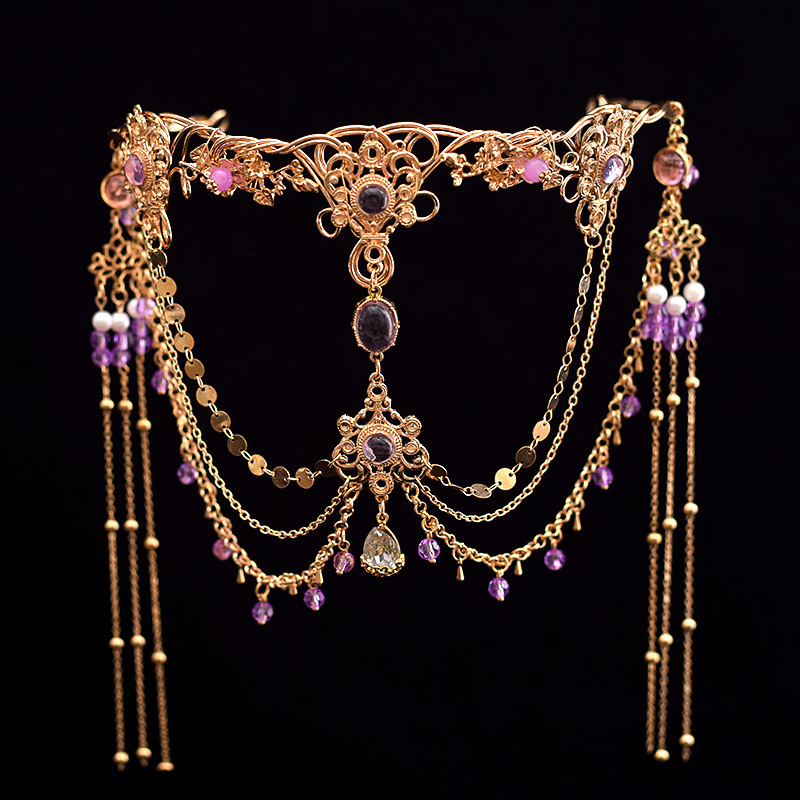 The Western Regions exotic style Dunhuang hairband, ancient costume with ethereal tassels, sunken eyebrows, ancient Hanfu, and ethnic minority bride's headwear