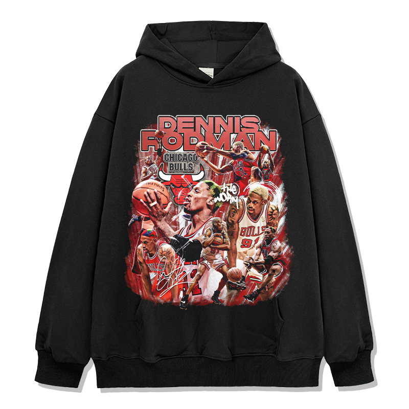 THE Word Rodman short-sleeved T-shirt, men's long-sleeved American retro hip-hop, European and American heavyweight round-neck hooded sweatshirt