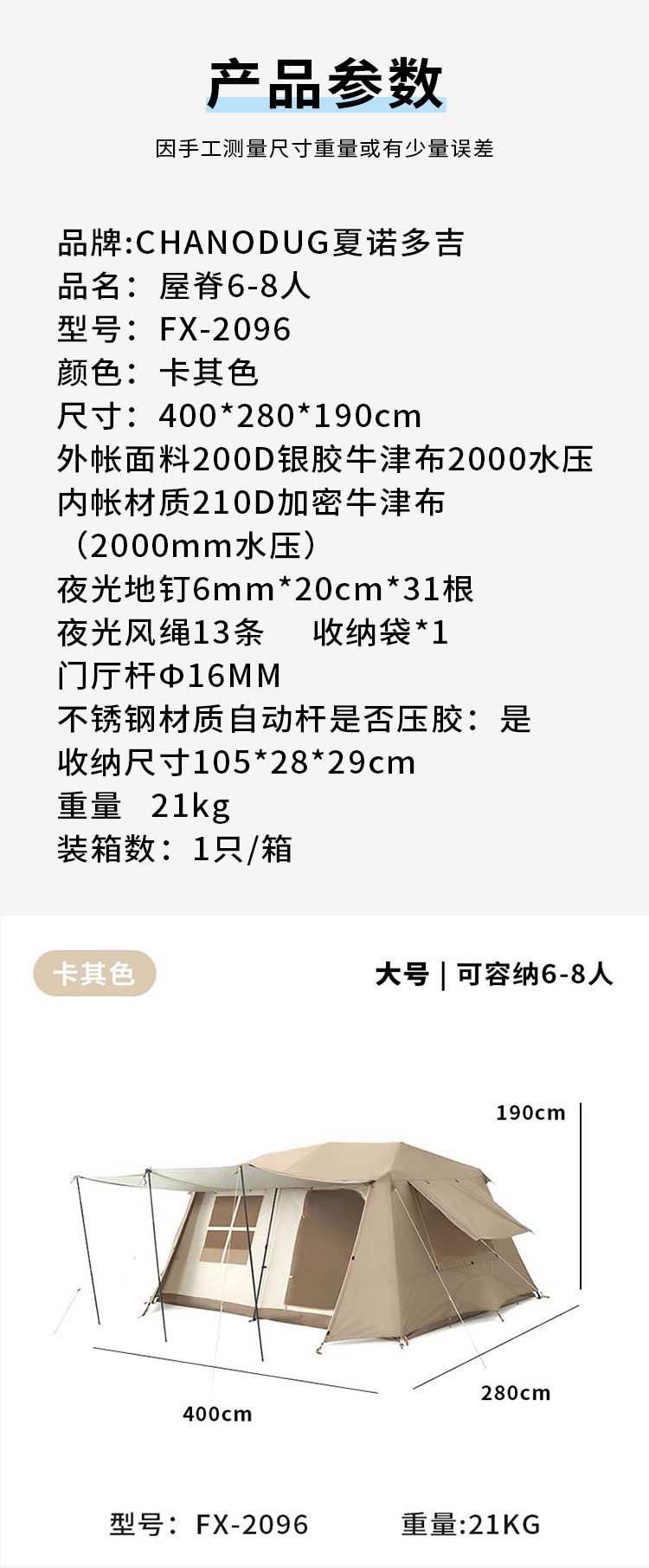 The Xanoduji outdoor ridge tent comes with an enlarged canopy, a multi-person family rain and sun protection cabin tent, a light luxury camping outdoor fashion 4-5 person tent