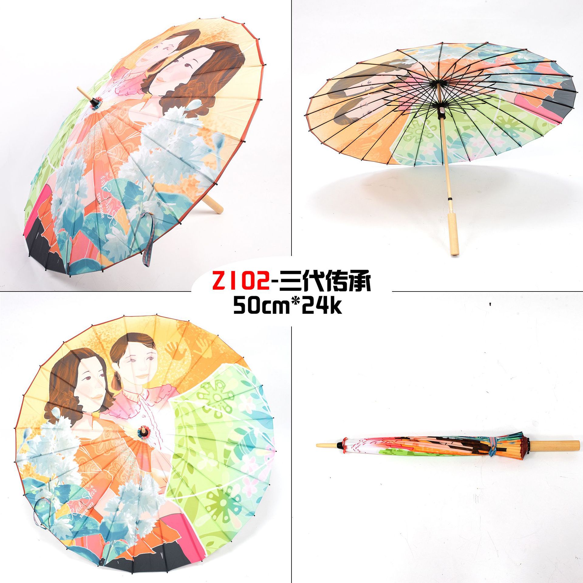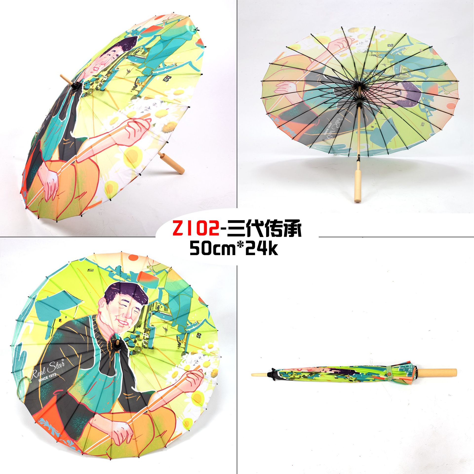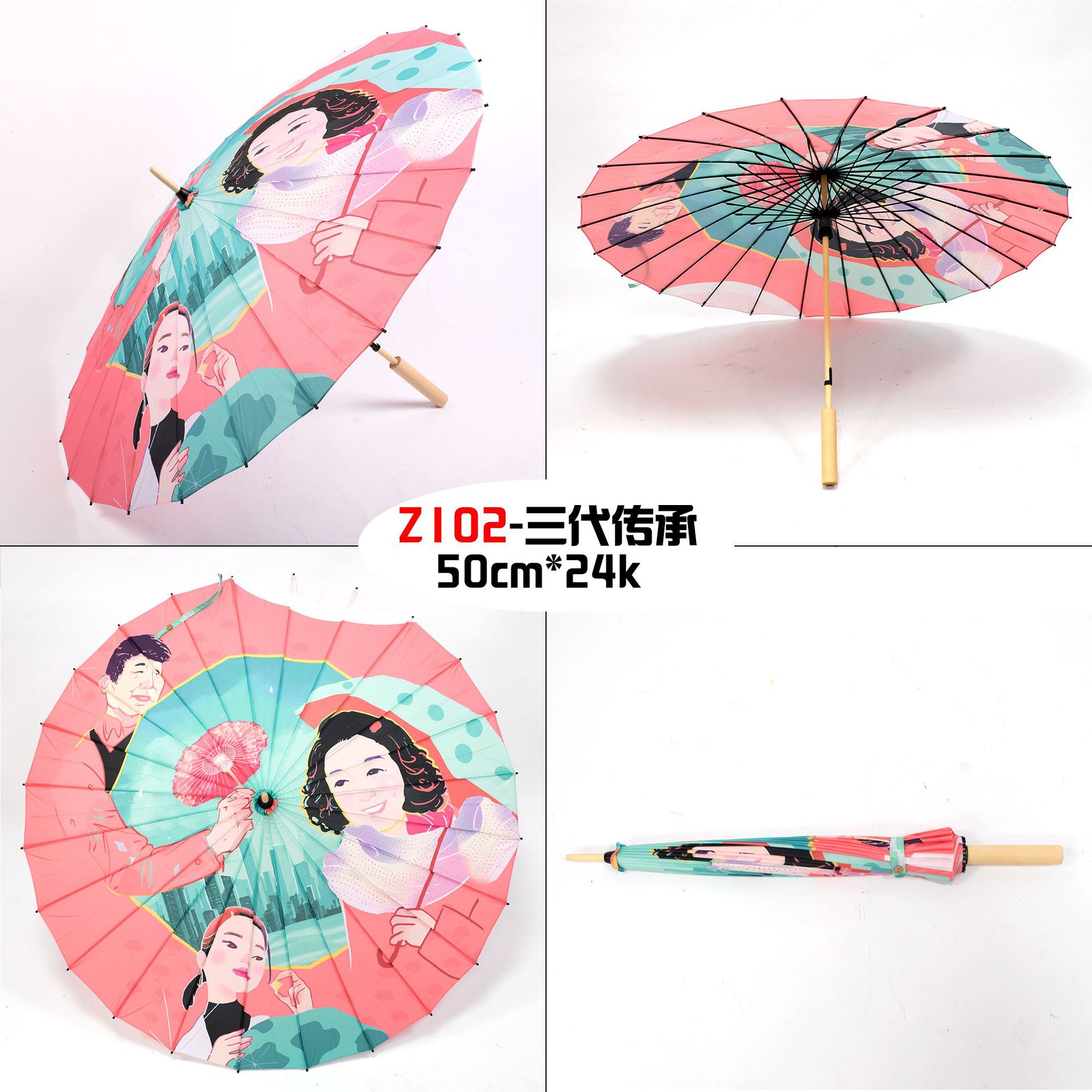 The Xingbao umbrella has passed down the corporate culture for three generations. It is a high-definition digital printing imitation oil-paper umbrella with a 24-bone wooden handle that can be printed