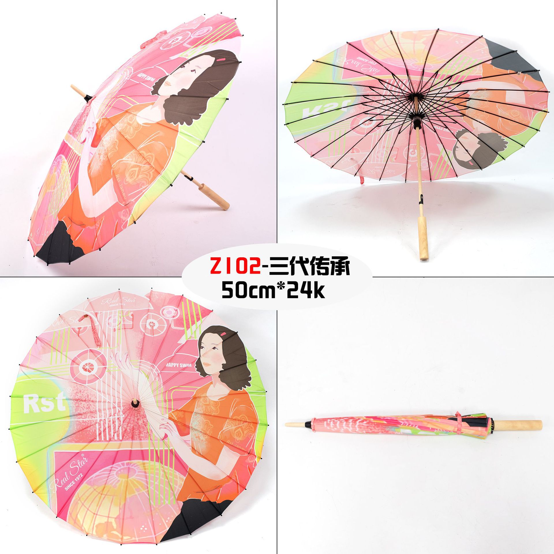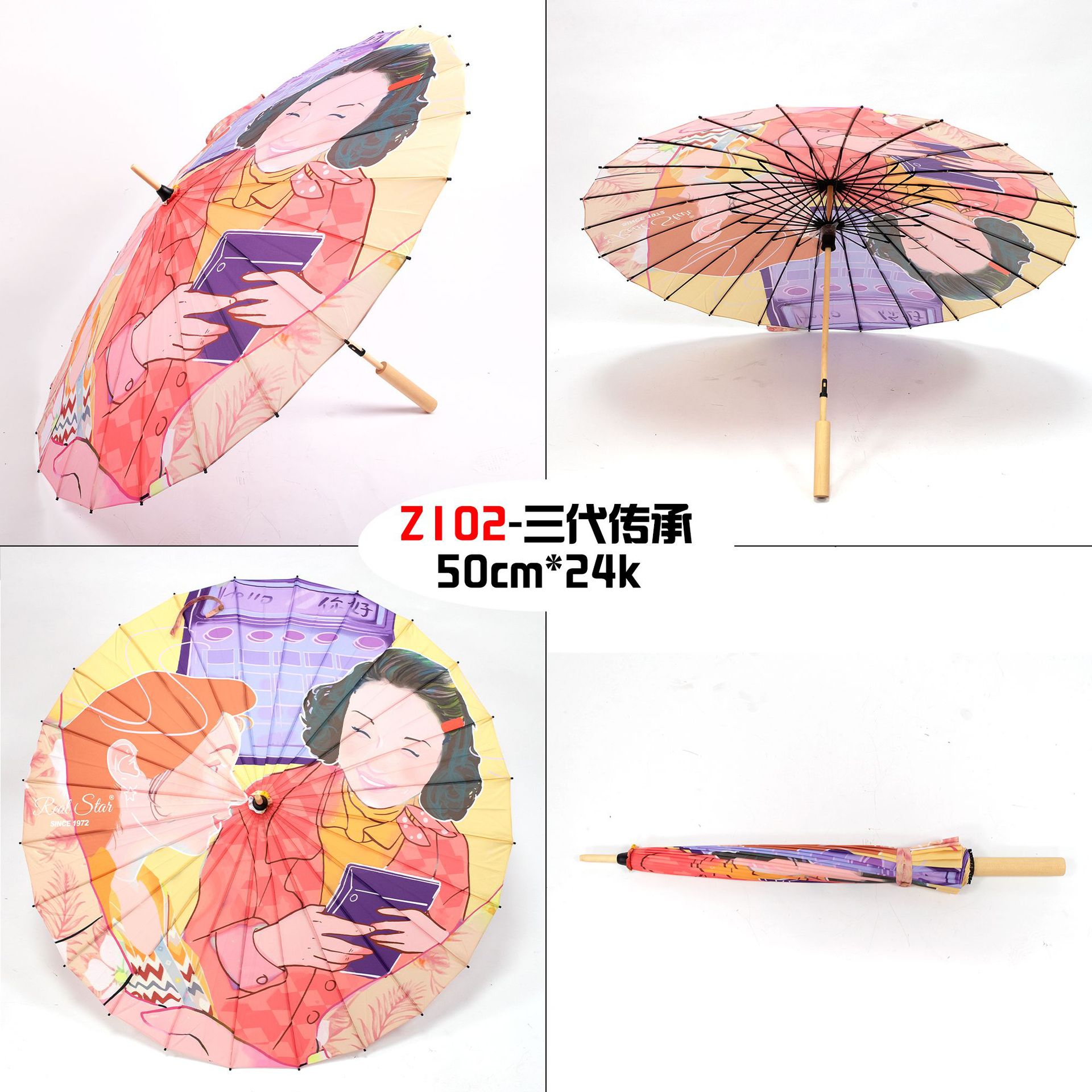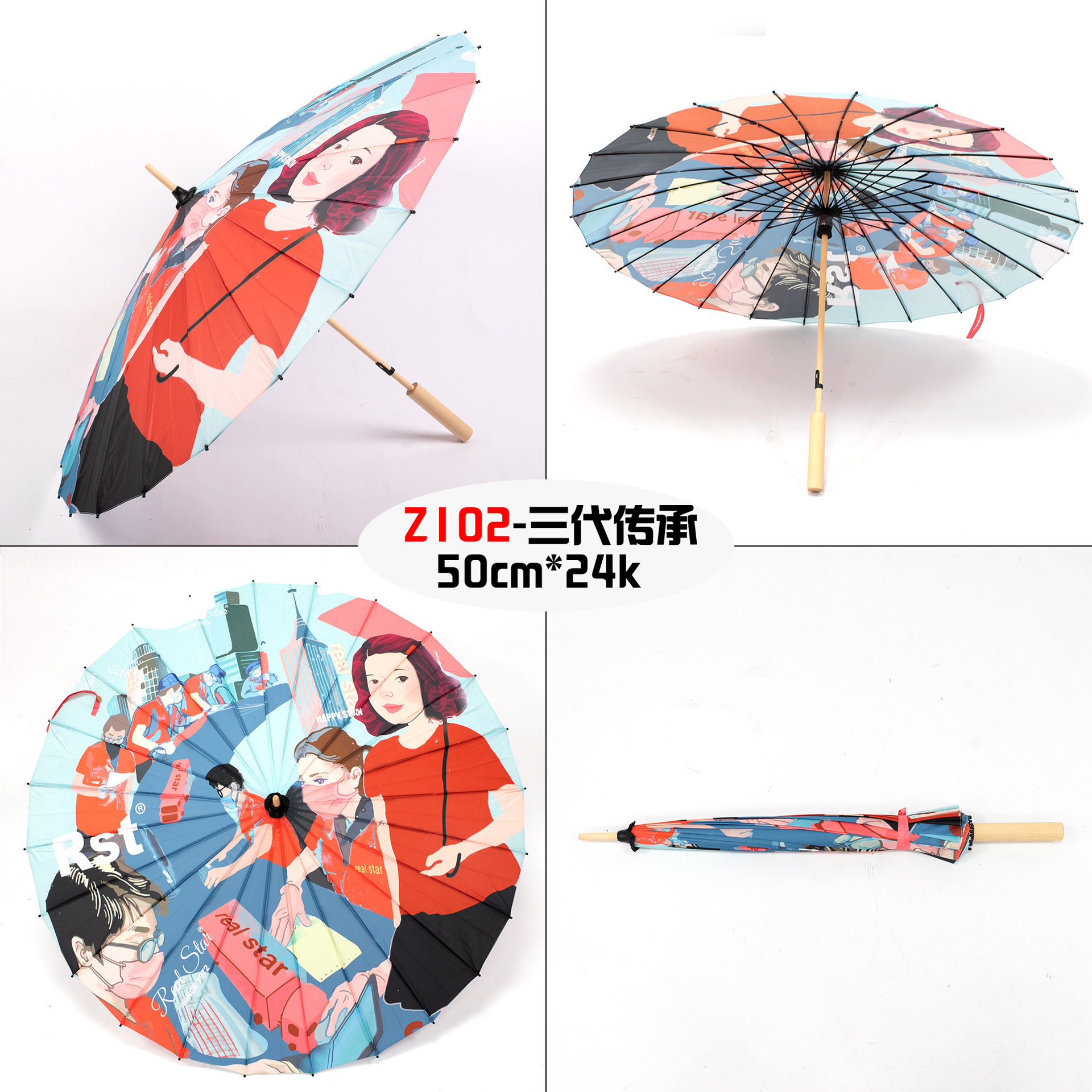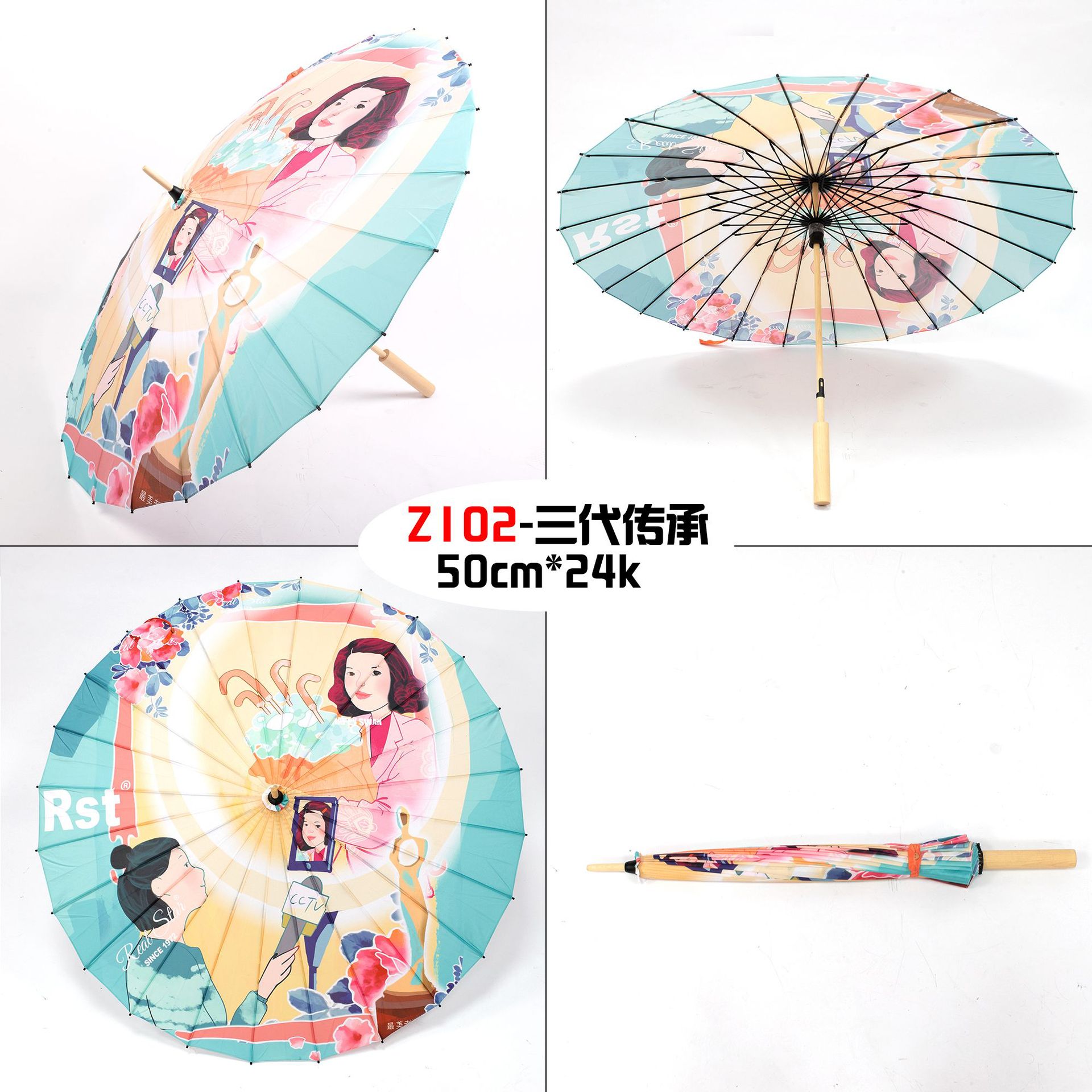 The Xingbao umbrella has passed down the corporate culture for three generations. It is a high-definition digital printing imitation oil-paper umbrella with a 24-bone wooden handle that can be printed