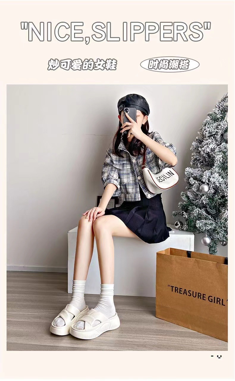 Thick-soled slippers for women's summer outdoor wear 2024 new style, fashionable and versatile for going out, women's home beach anti-slip cool slippers