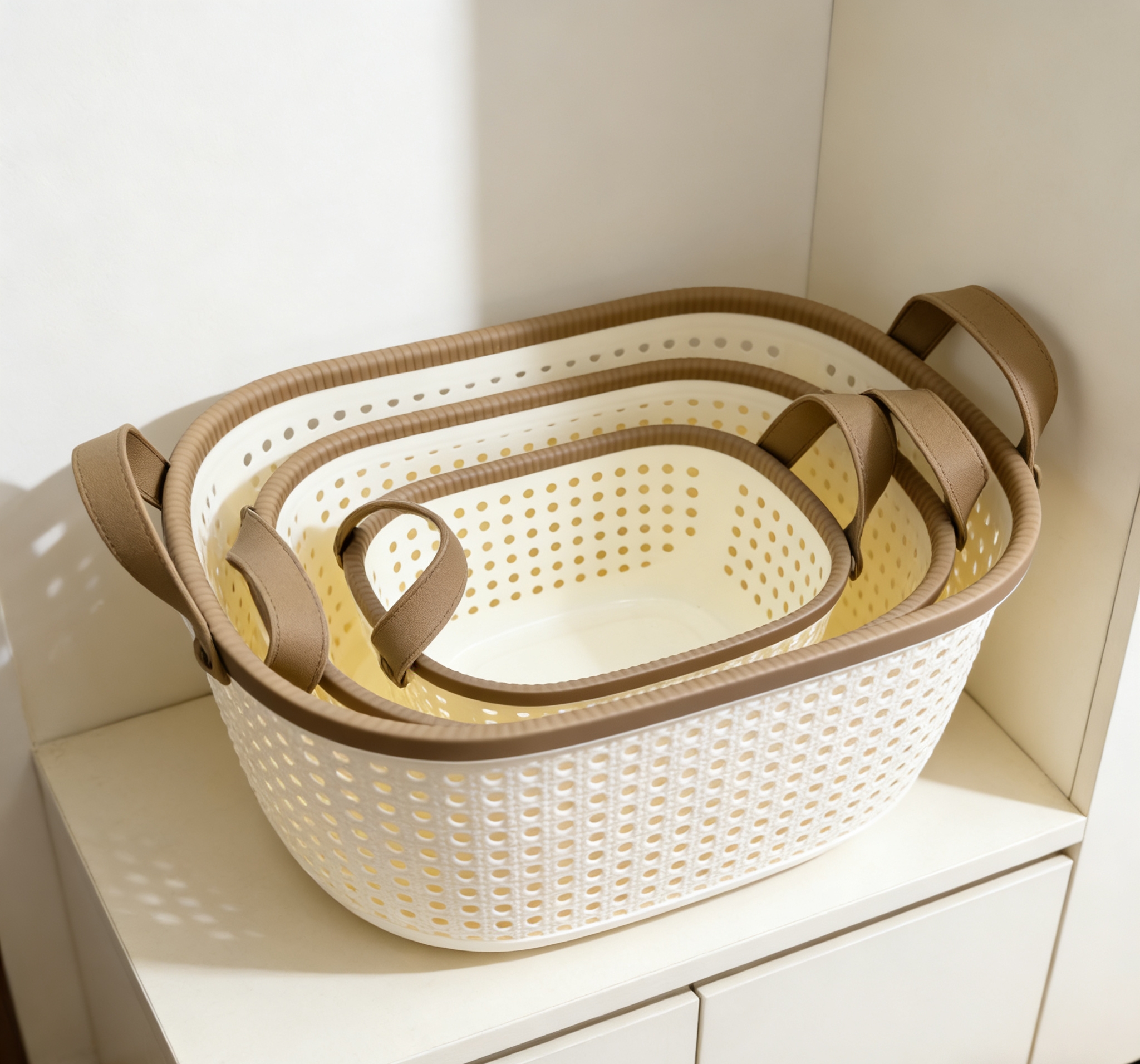 Thickened and durable plastic storage basket with hollowed-out water drainage design, bathroom bath products storage basket, portable handle storage basket wholesale