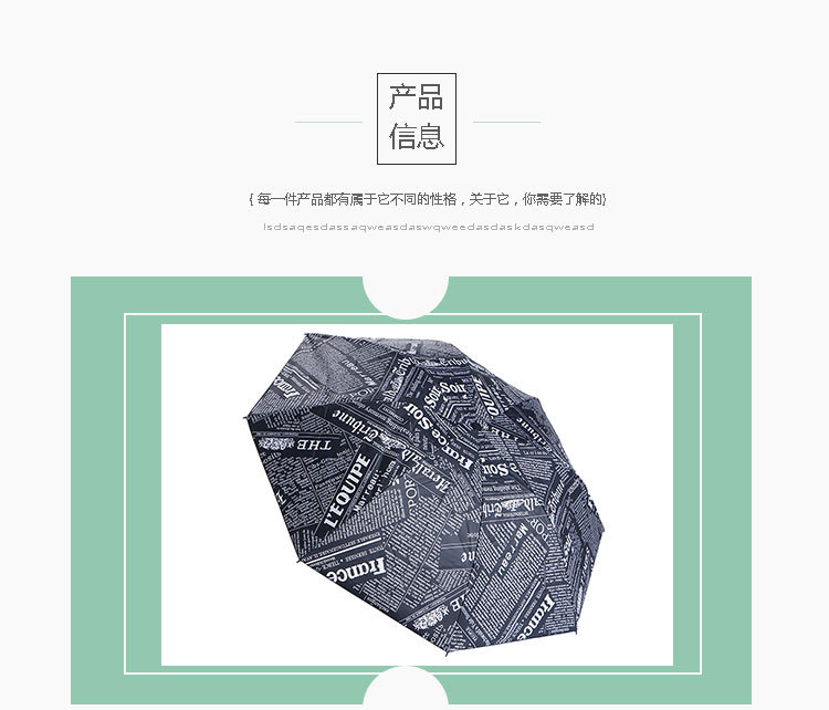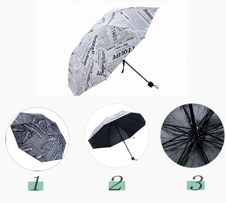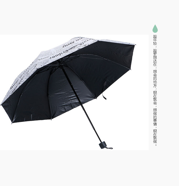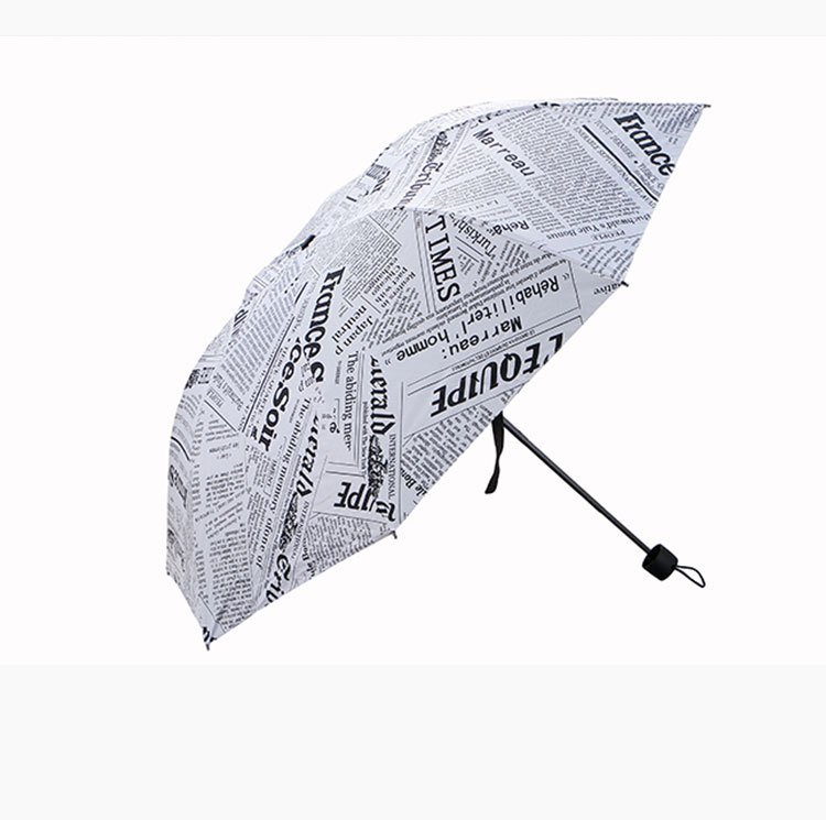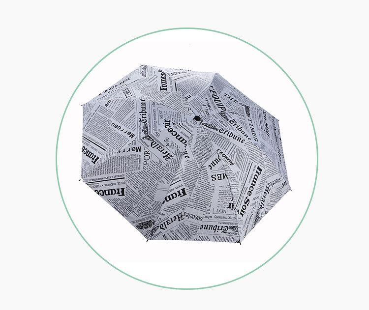 This European-style printed newspaper umbrella comes with vinyl. It's suitable for both sunny and rainy days!