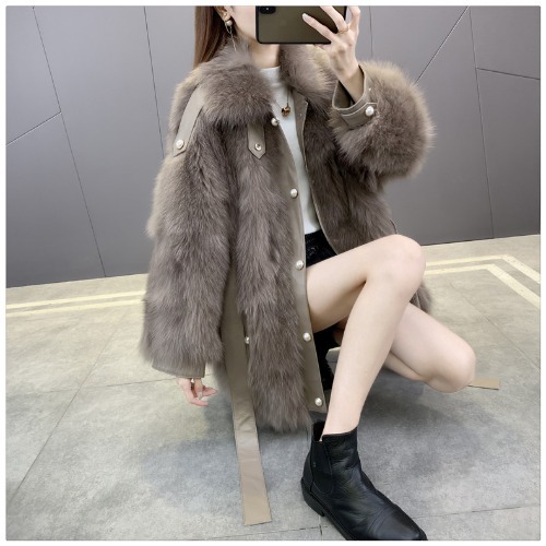 Thickened high-end fur coat for women, mid-length, 2022 new winter style, waist-cinched lapel, pearl fur one-piece thick coat